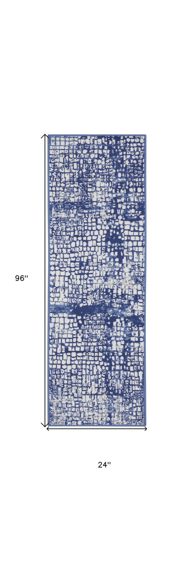 This 8-foot ivory and navy blue abstract distressed non skid runner rug, is a great way to add warmth to a room. Ideal for spaces with kids and pets, this rug is stain resistant to help repel dirt and spilled liquids. Built to last, this rug crafted from polypropylene fibers is known for its durability and long lasting appeal. Rugs are a great way to showcase your style, hide imperfections, warm your home and reduce noise. This rectangular shaped rug features a abstract design that will add a functional and decorative accent to your space. This modern styled runners makes a great accent for the hallway, in front of cabinets, in the laundry room, or any other space you need a narrow and long rug. 24-inch h x 96-inch w x 0.39-inch d.