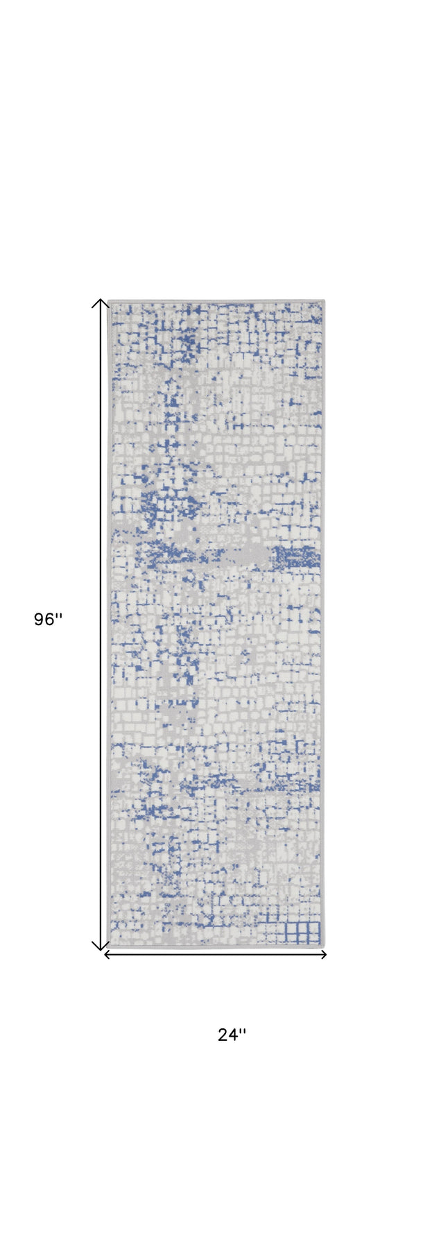 Add great coloration and comfortable texture to your space with this 8-foot ivory blue and gray abstract distressed non skid runner rug. Ideal for spaces with kids and pets, this rug is stain resistant to help repel dirt and spilled liquids. Built to last, this rug crafted from polyester fibers is known for its durability and long lasting appeal. Rugs are a great way to showcase your style, hide imperfections, warm your home and reduce noise. This rectangular shaped rug features a abstract design that will add a functional and decorative accent to your space. This modern styled runners makes a great accent for the hallway, in front of cabinets, in the laundry room, or any other space you need a narrow and long rug. 24-inch h x 96-inch w x 0.39-inch d.
