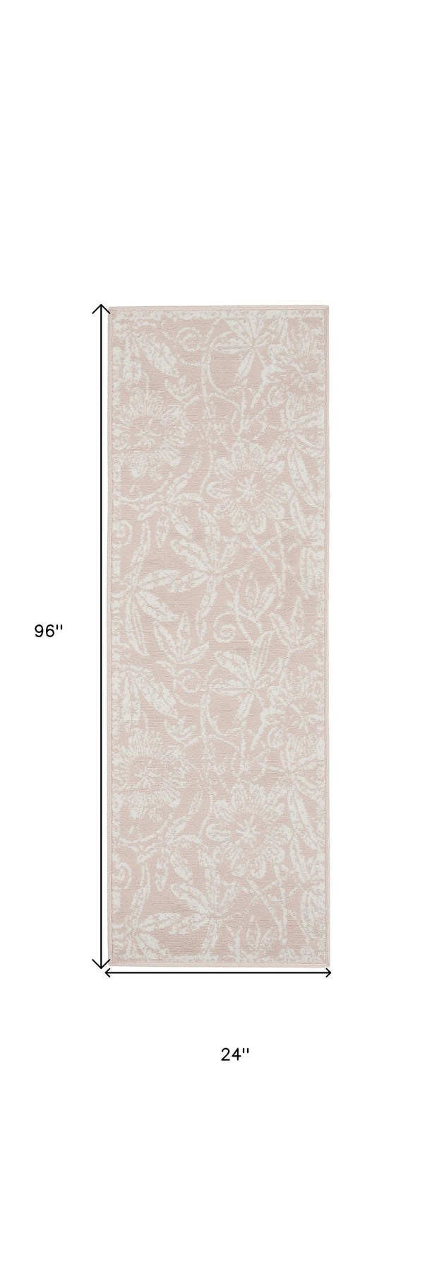 This 8-foot pink and ivory tropical floral distressed non skid runner rug, is a great way to add warmth to a room. Ideal for spaces with kids and pets, this rug is stain resistant to help repel dirt and spilled liquids. Built to last, this rug crafted from polypropylene fibers is known for its durability and long lasting appeal. Rugs are a great way to showcase your style, hide imperfections, warm your home and reduce noise. This rectangular shaped rug features a abstract design that will add a functional and decorative accent to your space. This cottage styled runners makes a great accent for the hallway, in front of cabinets, in the laundry room, or any other space you need a narrow and long rug. 24-inch h x 96-inch w x 0.39-inch d.