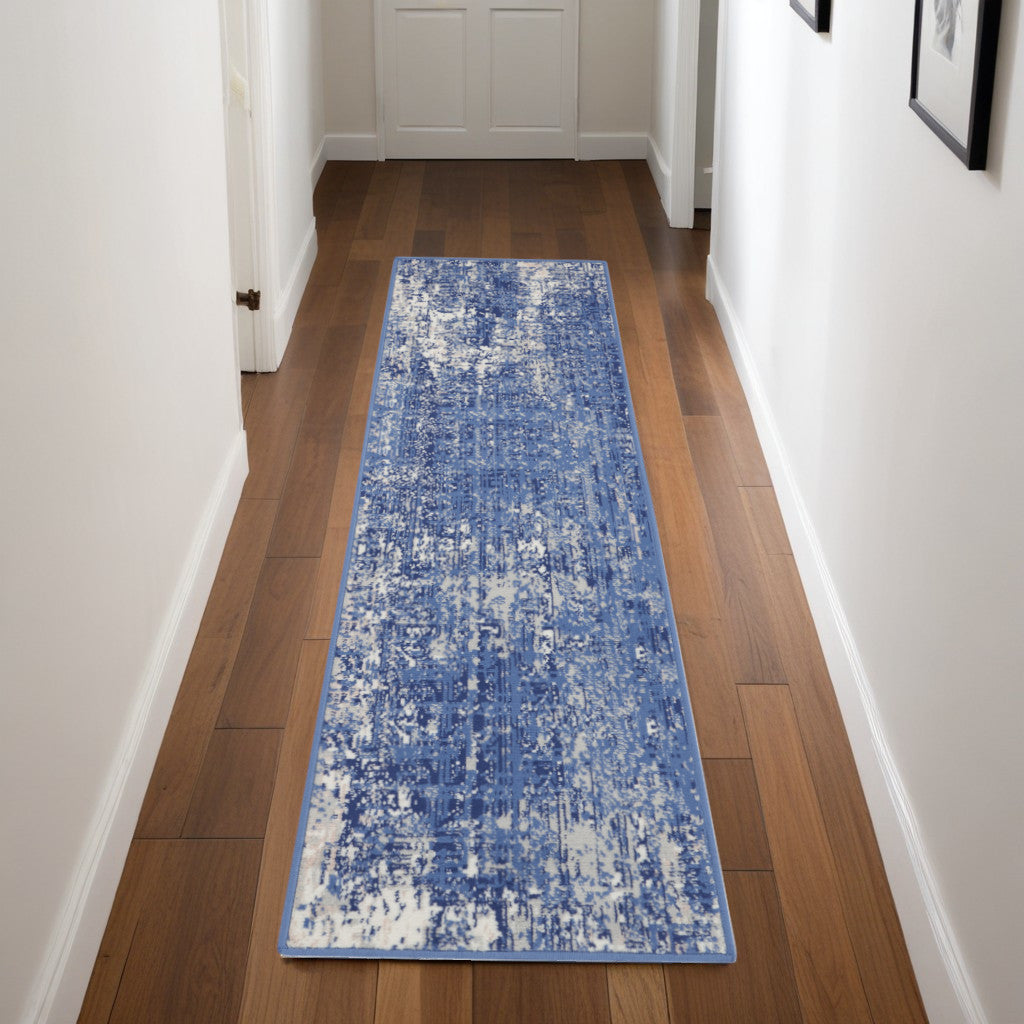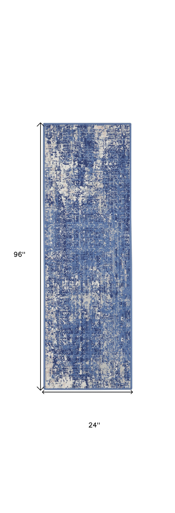 Add some artistry to your room with this 8-foot ivory and blue abstract distressed non skid runner rug. Ideal for spaces with kids and pets, this rug is stain resistant to help repel dirt and spilled liquids. Built to last, this rug crafted from polypropylene fibers is known for its durability and long lasting appeal. Rugs are a great way to showcase your style, hide imperfections, warm your home and reduce noise. This rectangular shaped rug features a abstract design that will add a functional and decorative accent to your space. This modern styled runners makes a great accent for the hallway, in front of cabinets, in the laundry room, or any other space you need a narrow and long rug. 24-inch h x 96-inch w x 0.39-inch d.