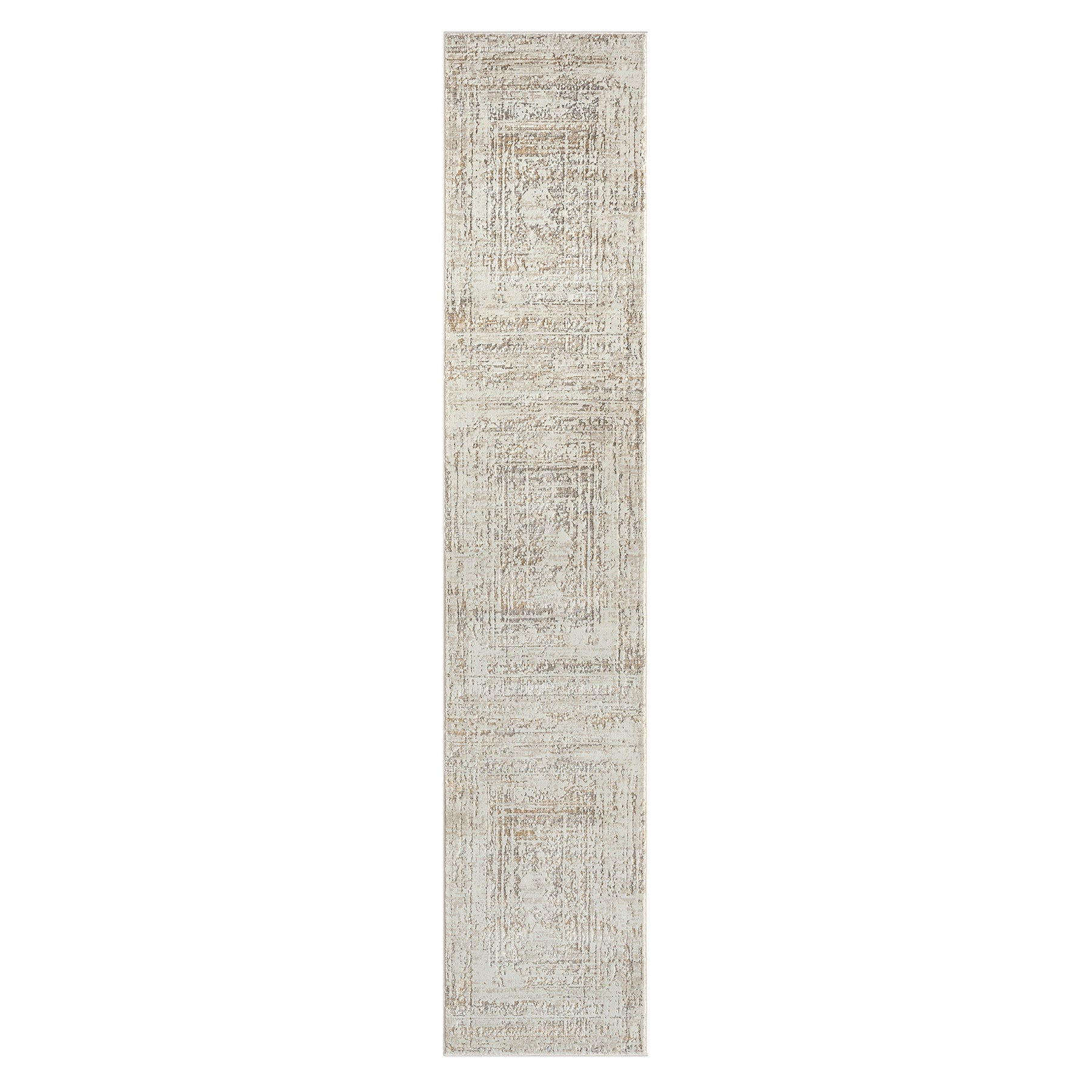 Add great coloration and comfortable texture to your space with this 2' x 8' beige abstract distressed runner rug. This runner shaped rug features a abstract design in beige to give it visual interest. A classic shape marries with good looking design for your space This superior Turkish rug represents the highest quality and is built to last. Place this area rug against a hardwood or tile floor and it will enliven your living space with style and sophistication. 0.35" H x 24" W x 96" D