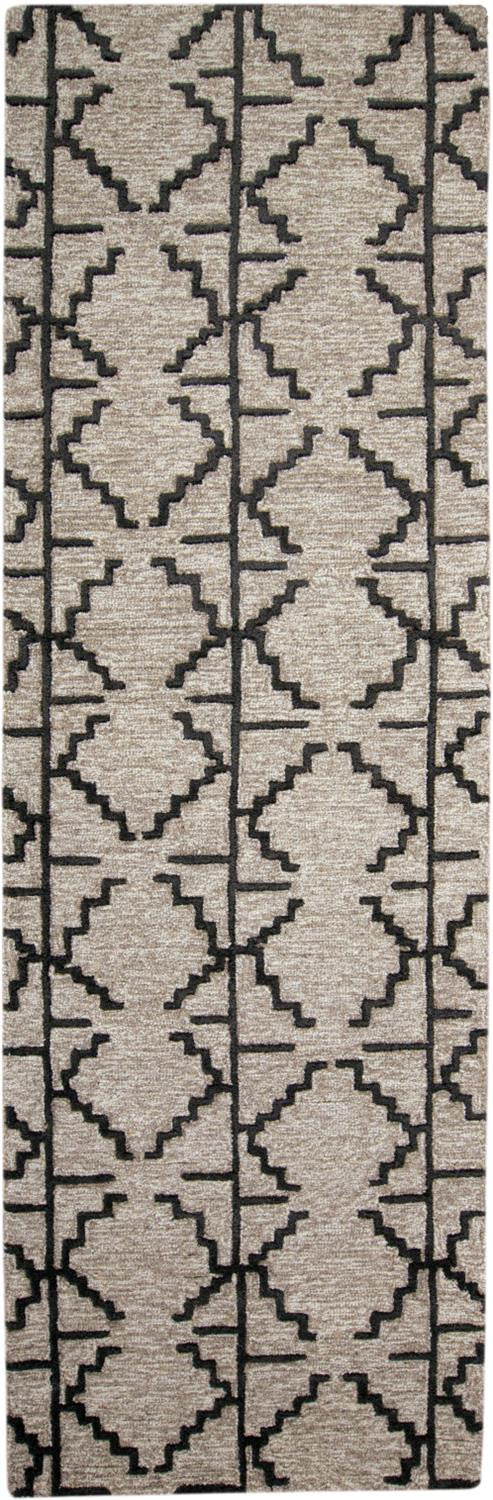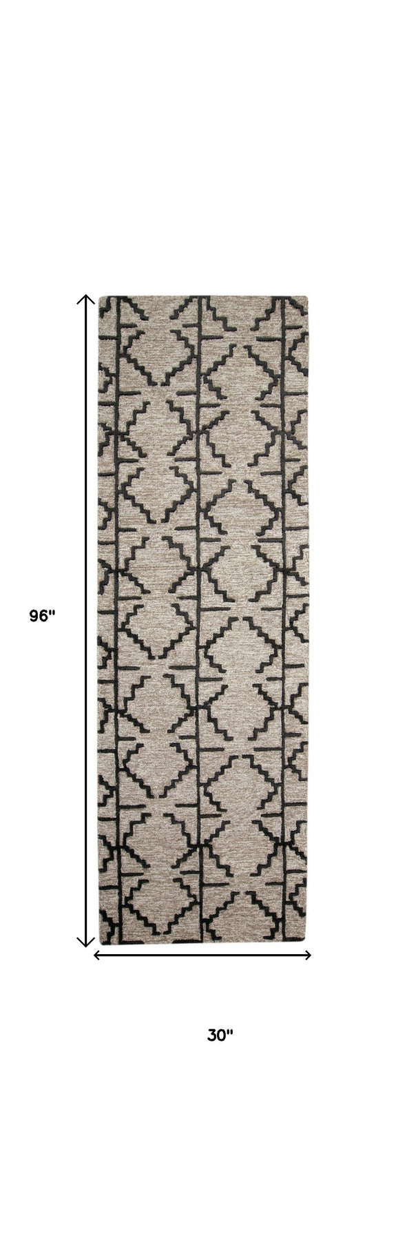 Set an inviting tone in your space with this 8-foot black and taupe geometric hand tufted runner rug. Crafted from wool blend fibers that give this piece premium texture, refinement, and appeal. This runner shaped rug features a geometric design that will add a functional and decorative accent to your space. Ideal for spaces with kids and pets, this rug is stain resistant to help repel dirt and spilled liquids. This smaller sized rug is just what you need for your walkway, or in front of door, cabinet, refrigerator, or chair. 30-inch h x 96-inch w x 0.31-inch d