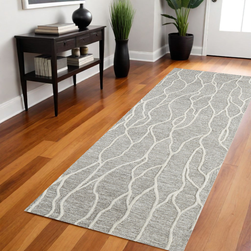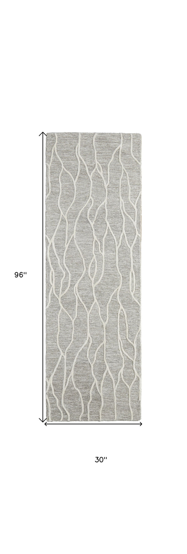 Set an inviting tone in your space with this 8' taupe and ivory wool abstract tufted handmade stain resistant runner rug. This runner shaped rug features a abstract design in taupe and ivory to give it visual interest. A classic shape marries with good looking design for your space Ideal for spaces with kids and pets, this rug is stain resistant to help repel stains and spilled liquids. Area Rugs help to give warmth and sense of home to your space. 0.31" H x 30" W x 96" D