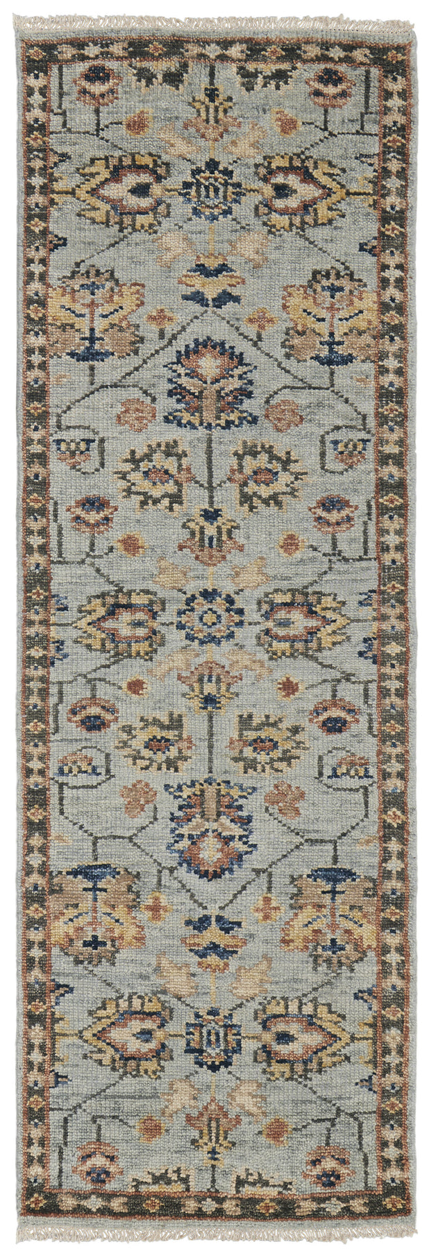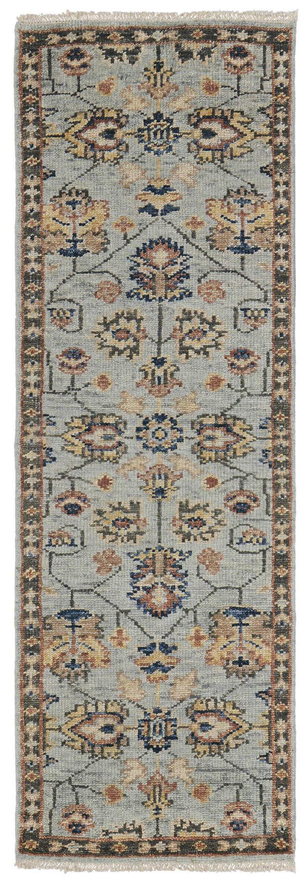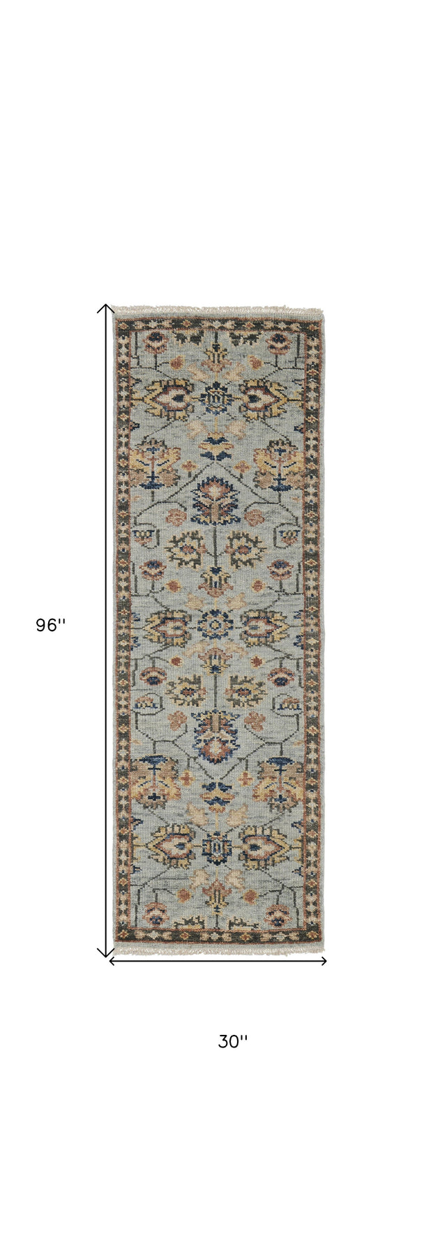 Set an inviting tone in your space with this 8-foot gray and gold oriental hand knotted runner rug with fringe. Crafted by skilled artisans, this hand knotted rug is genuine and unique. No two will be exactly alike. Crafted from wool blend fibers that give this piece premium texture, refinement, and appeal. This runner shaped rug features a oriental design that will add a functional and decorative accent to your space. Ideal for spaces with kids and pets, this rug is stain resistant to help repel dirt and spilled liquids. Tassel ends bring a timeless and fashionable look to your interior. This smaller sized rug is just what you need for your walkway, or in front of door, cabinet, refrigerator, or chair. 30-inch h x 96-inch w x 0.28-inch d