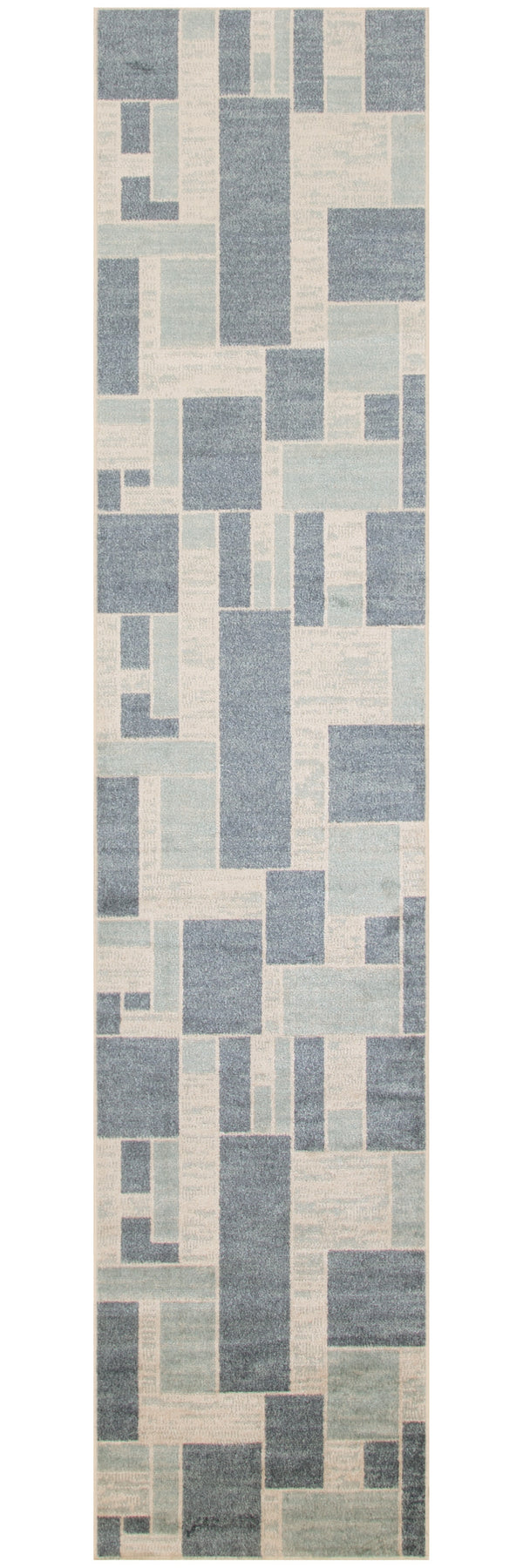 Add some artistry to your room with this 8-foot blue and ivory geometric washable runner rug. Built to last, this rug crafted from polyester fibers is known for its durability and long lasting appeal. Rugs are a great way to showcase your style, hide imperfections, warm your home and reduce noise. This rectangular shaped rug features a abstract design that will add a functional and decorative accent to your space. This contemporary style runner makes a great accent for the hallway, in front of cabinets, in the laundry room, or any other space you need a narrow and long rug. 26-inch h x 96-inch w x 0.25-inch d.