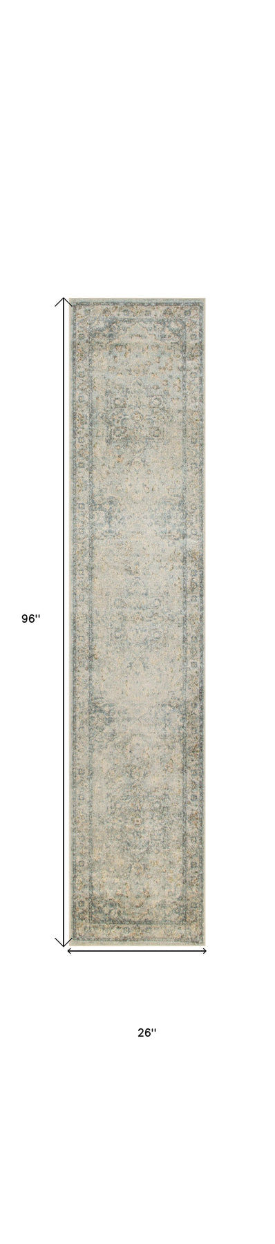 This 8-foot blue and ivory floral medallion distressed washable runner rug, is a great way to add warmth to a room. Built to last, this rug crafted from polyester fibers is known for its durability and long lasting appeal. Rugs are a great way to showcase your style, hide imperfections, warm your home and reduce noise. This rectangular shaped rug features a abstract design that will add a functional and decorative accent to your space. This traditional style runner makes a great accent for the hallway, in front of cabinets, in the laundry room, or any other space you need a narrow and long rug. 26-inch h x 96-inch w x 0.25-inch d.