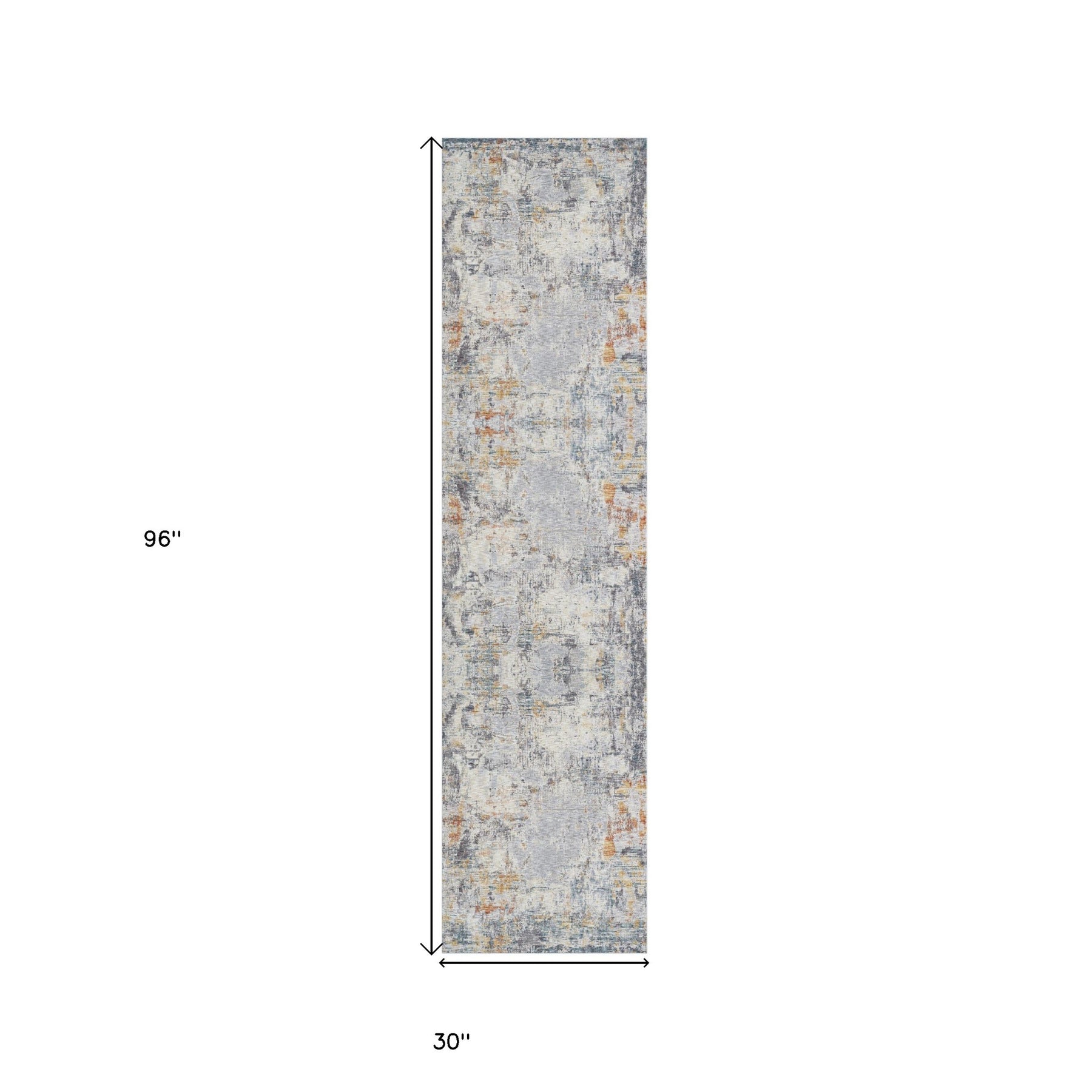Add some artistry to your room with this 8-foot gray and ivory abstract runner rug. Built to last, this rug crafted from polyester fibers is known for its durability and long lasting appeal. Rugs are a great way to showcase your style, hide imperfections, warm your home and reduce noise. This rectangular shaped rug features a abstract design that will add a functional and decorative accent to your space. This modern style runner makes a great accent for the hallway, in front of cabinets, in the laundry room, or any other space you need a narrow and long rug. 30-inch h x 96-inch w x 0.24-inch d.