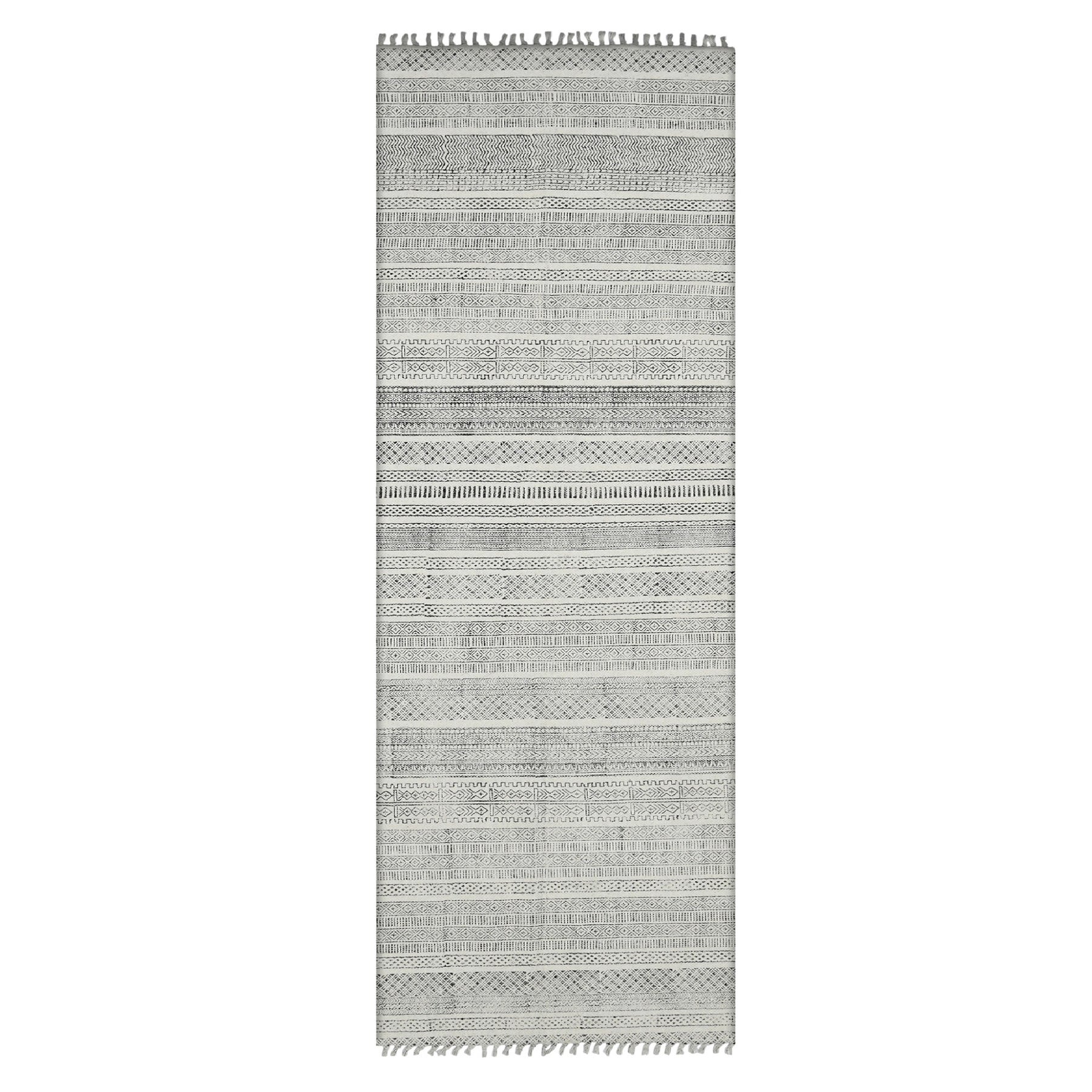 This 8 feet charcoal geometric flatweave handmade distressed runner rug, is a great way to add warmth to a room. This runner shaped rug features a geometric design in charcoal to give it visual interest. A classic shape marries with good looking design for your space Tassel ends bring a timeless and fashionable look to your interior. Place this area rug against a hardwood or tile floor and it will enliven your living space with style and sophistication. 0.2 inches H x 30 inches W x 96 inches D