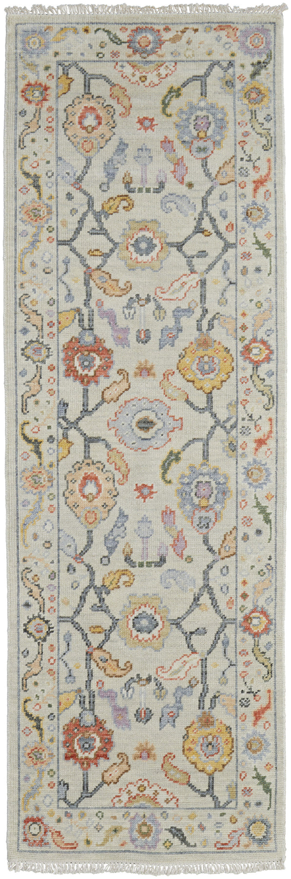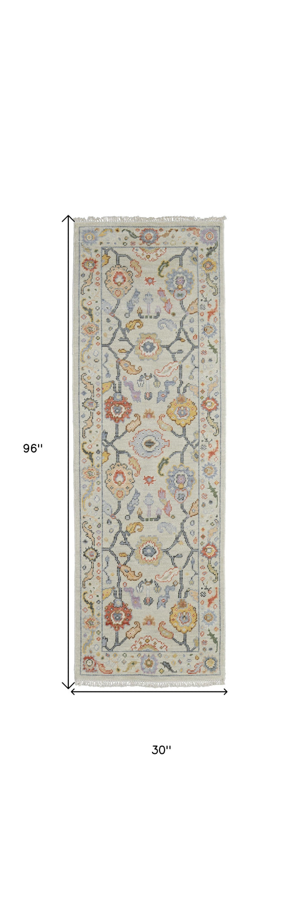 This 8-foot gray red and yellow wool oriental hand knotted runner rug with fringe, is a great way to add warmth to a room. This runner shaped rug features a oriental design in gray red and yellow to give it visual interest. A classic shape marries with good looking design for your space ideal for spaces with kids and pets, this rug is stain resistant to help repel stains and spilled liquids. Tassel ends bring a timeless and fashionable look to your interior. Crafted by skilled artisans, this hand knotted rug is genuine and unique. No two will be exactly alike. 30-inch H x 96-inch W x 0.2-inch D