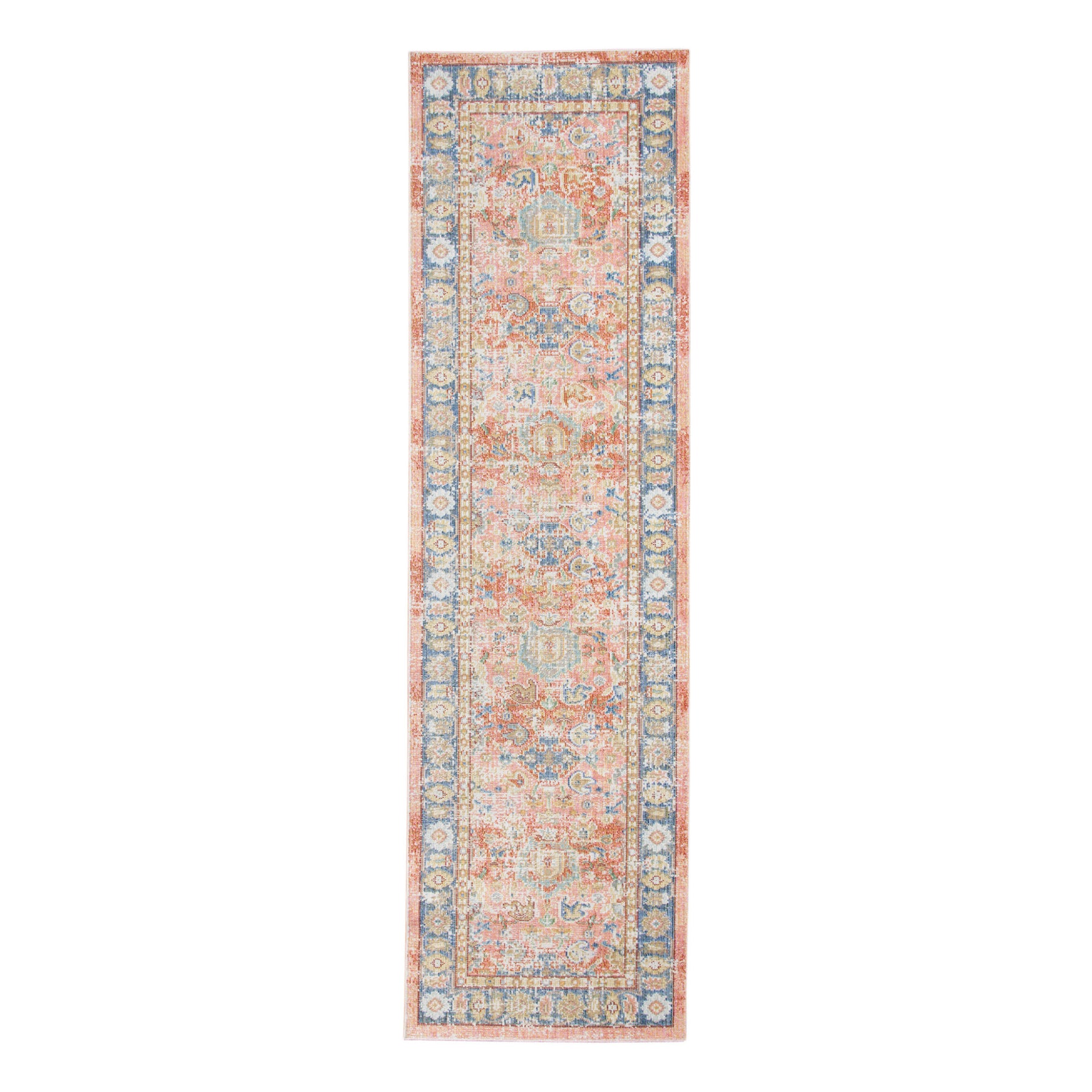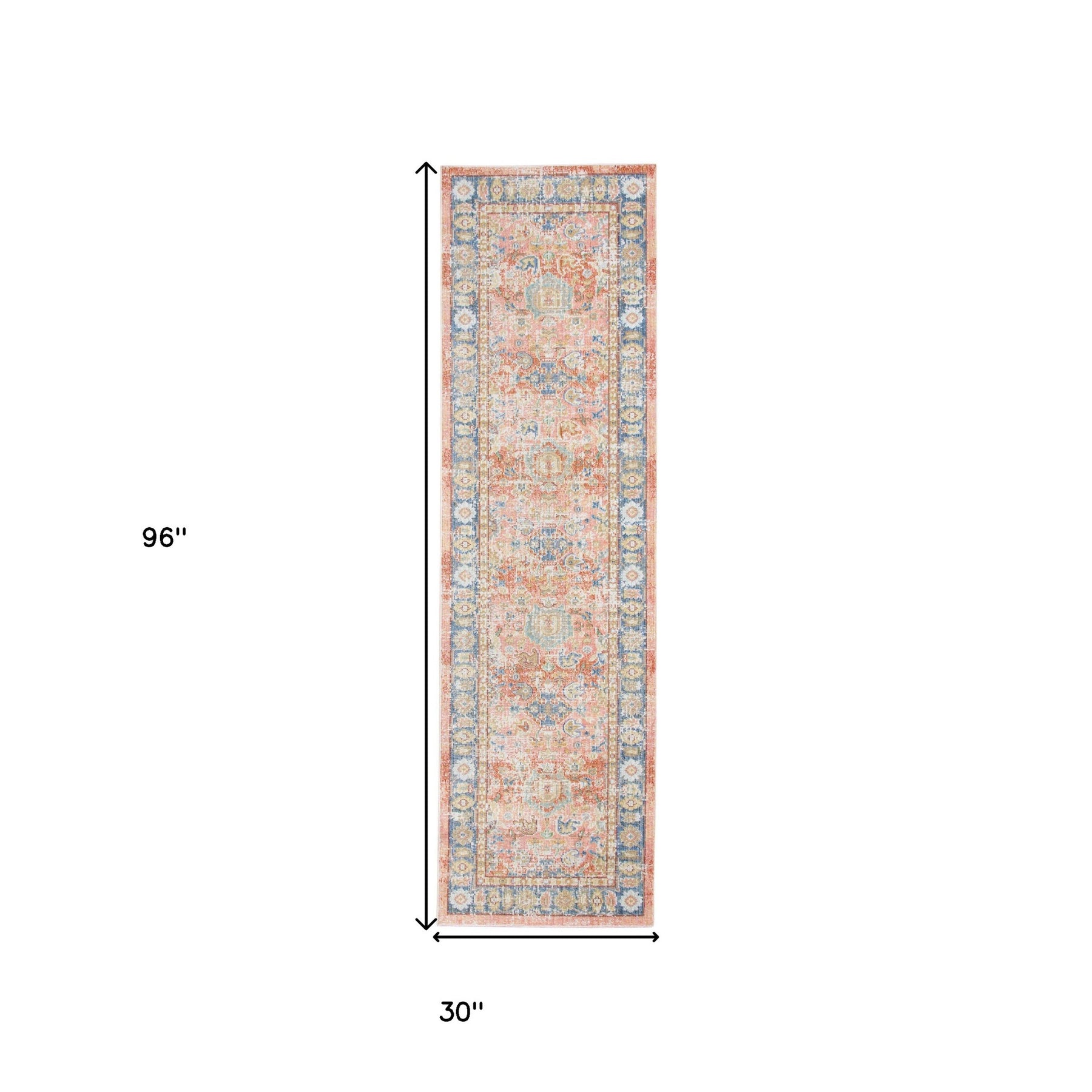 Add some artistry to your room with this 8-foot blue gold and orange floral runner rug. Built to last, this rug crafted from polyester fibers is known for its durability and long lasting appeal. Rugs are a great way to showcase your style, hide imperfections, warm your home and reduce noise. This rectangular shaped rug features a abstract design that will add a functional and decorative accent to your space. This contemporary style runner makes a great accent for the hallway, in front of cabinets, in the laundry room, or any other space you need a narrow and long rug. 30-inch h x 96-inch w x 0.08-inch d.