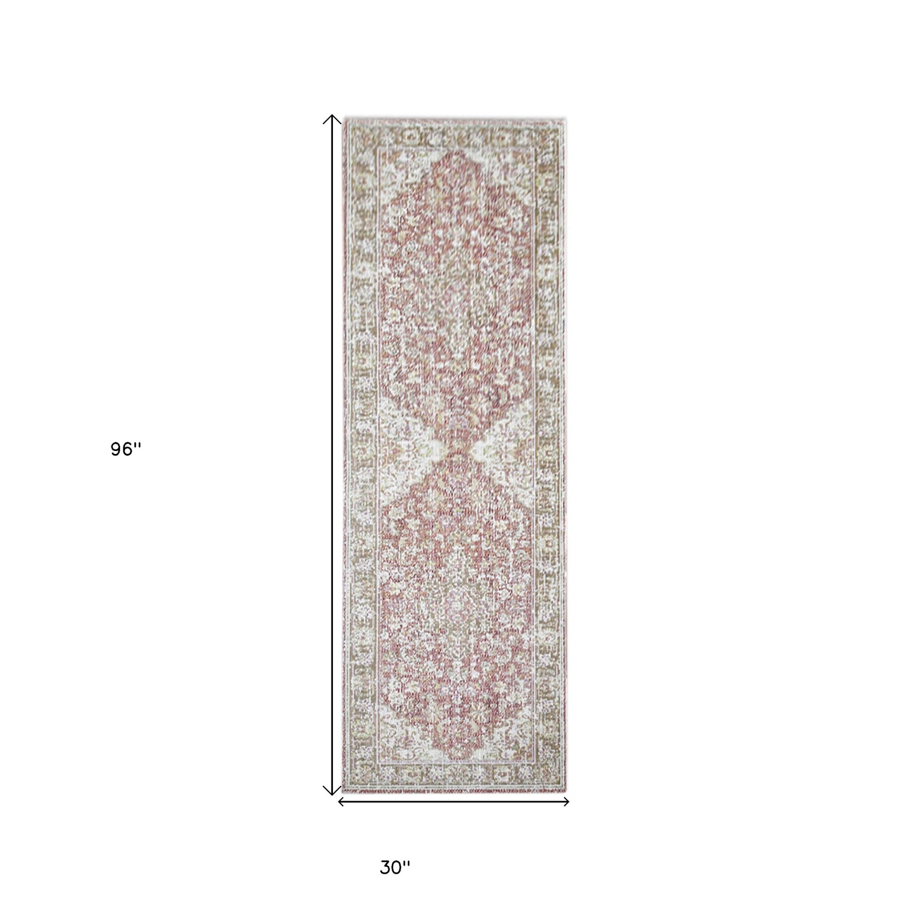 Set an inviting tone in your space with this 8-foot sage and gray medallion runner rug. Built to last, this rug crafted from polyester fibers is known for its durability and long lasting appeal. Rugs are a great way to showcase your style, hide imperfections, warm your home and reduce noise. This rectangular shaped rug features a abstract design that will add a functional and decorative accent to your space. This contemporary style runner makes a great accent for the hallway, in front of cabinets, in the laundry room, or any other space you need a narrow and long rug. 30-inch h x 96-inch w x 0.08-inch d.
