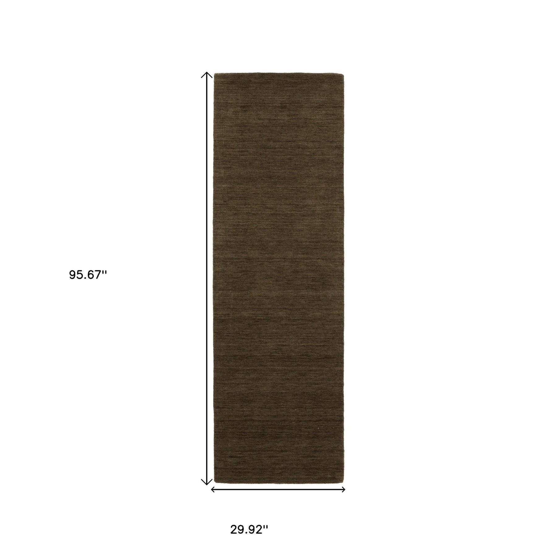 Set an inviting tone in your space with this 8-foot brown wool hand tufted runner rug. This runner shaped rug flaunts a brown color that will be a great way to accent your space. Solid colors are versatile and will blend with any existing decor style. Place this area rug against a hardwood or tile floor and it will enliven your living space with style and sophistication. 29.92-inch H x 95.67-inch W x 0.59-inch D