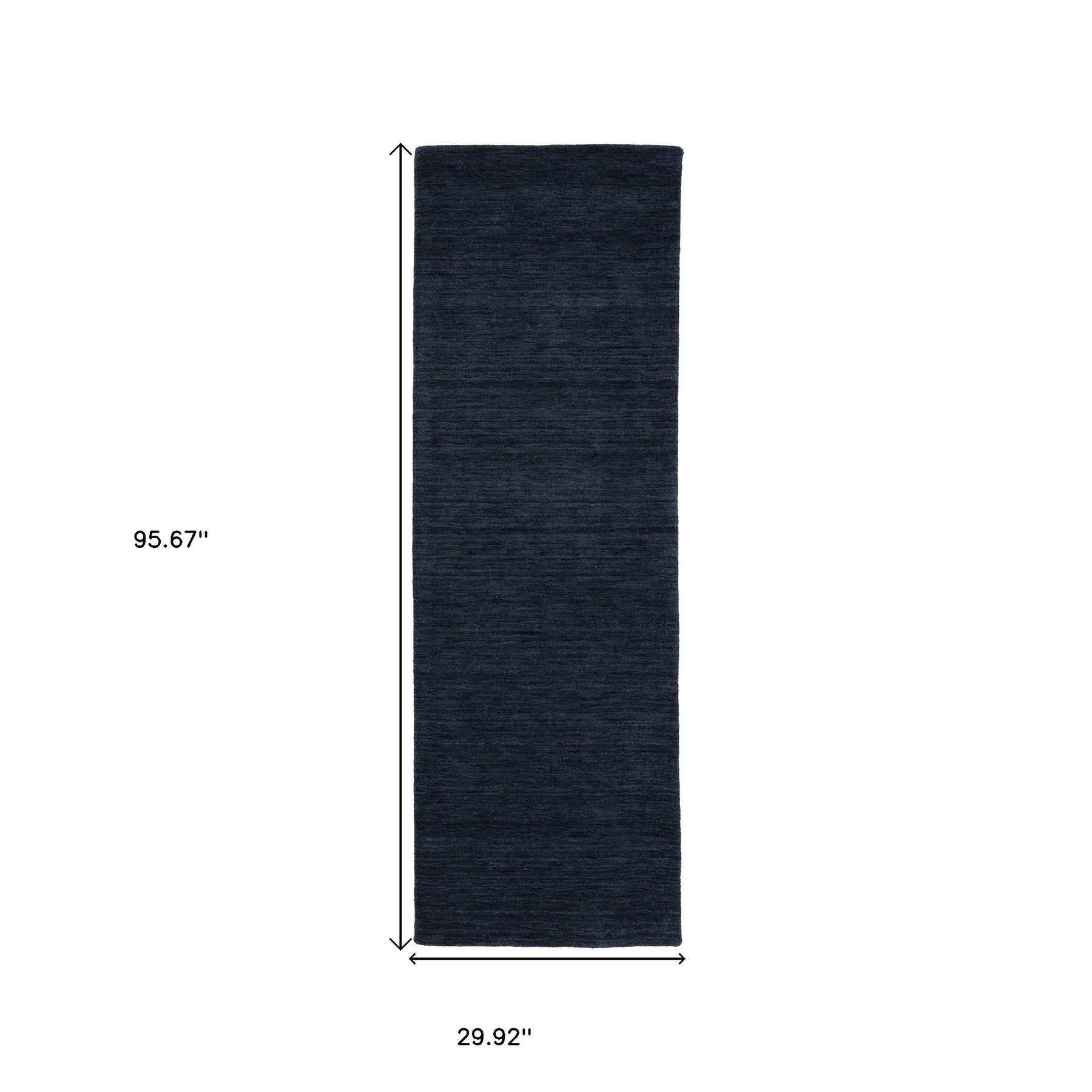 This 8-foot navy blue wool hand tufted runner rug, is a great way to add warmth to a room. This runner shaped rug flaunts a navy blue color that will be a great way to accent your space. Solid colors are versatile and will blend with any existing decor style. Area rugs help to give warmth and sense of home to your space. 29.92-inch H x 95.67-inch W x 0.59-inch D