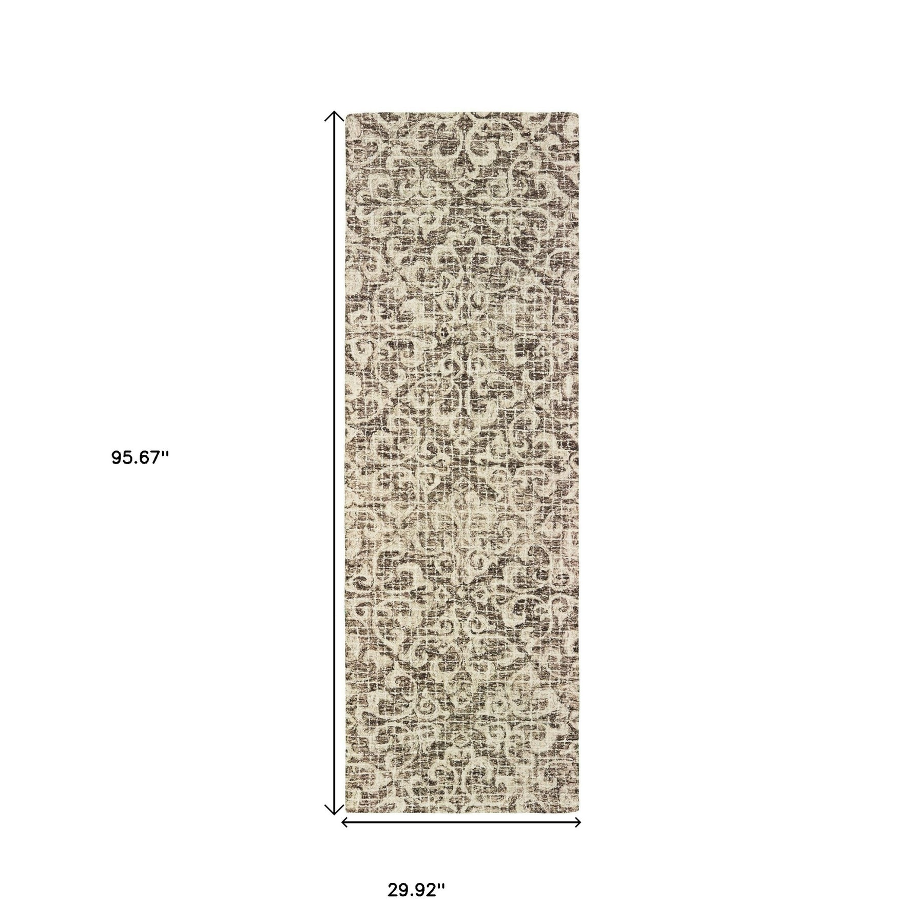 Set an inviting tone in your space with this 8-foot brown wool floral hand tufted runner rug. This runner shaped rug features a floral design in brown to give it visual interest. A classic shape marries with good looking design for your space place this area rug against a hardwood or tile floor and it will enliven your living space with style and sophistication. 29.92-inch H x 95.67-inch W x 0.39-inch D
