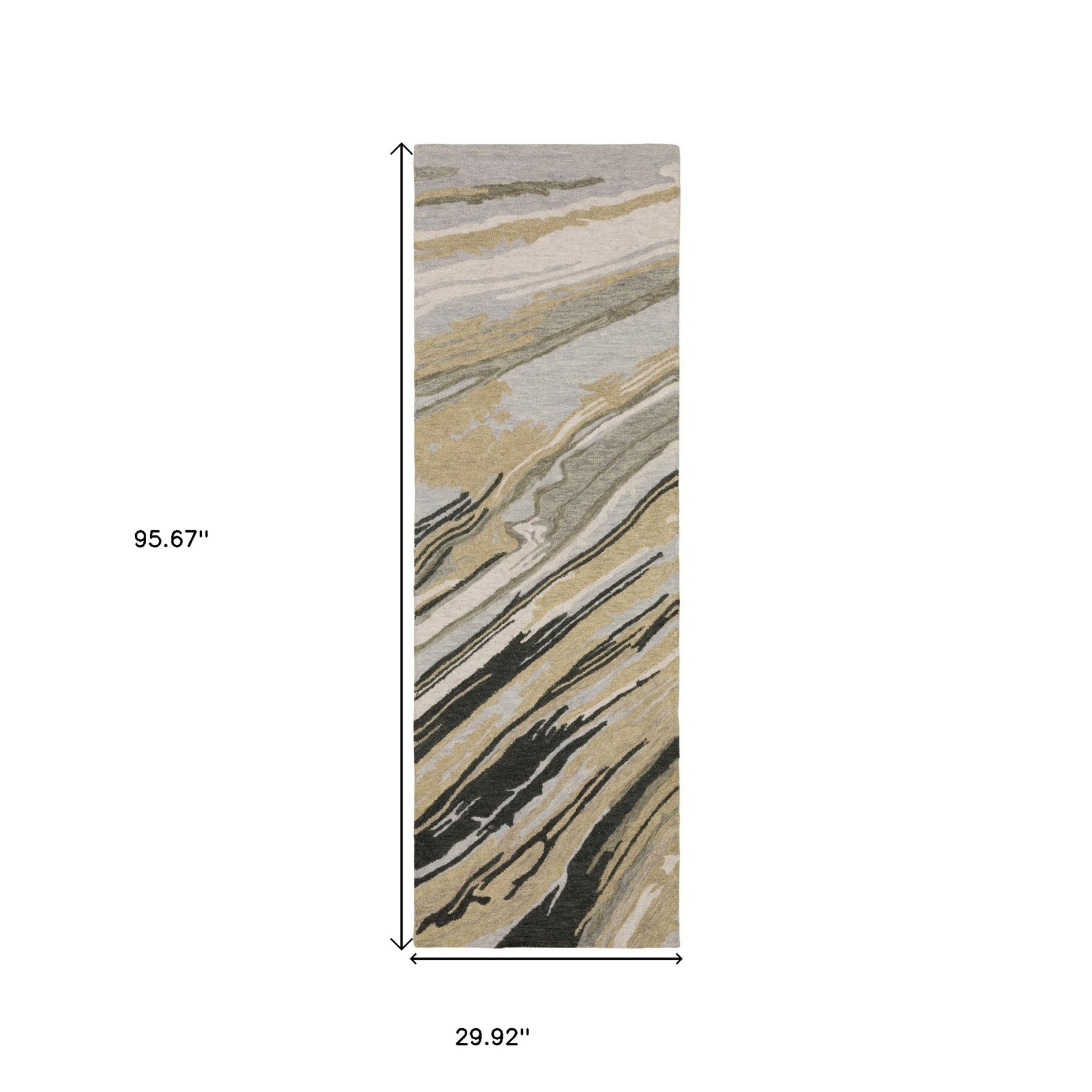 Add some artistry to your room with this 8-foot gray wool abstract hand tufted runner rug. This runner shaped rug features a abstract design in gray to give it visual interest. A classic shape marries with good looking design for your space the coloring of this rug adds a delightfully neutral tone to your home and will easily match with most any decor. Area rugs help to give warmth and sense of home to your space. 29.92-inch H x 95.67-inch W x 0.39-inch D