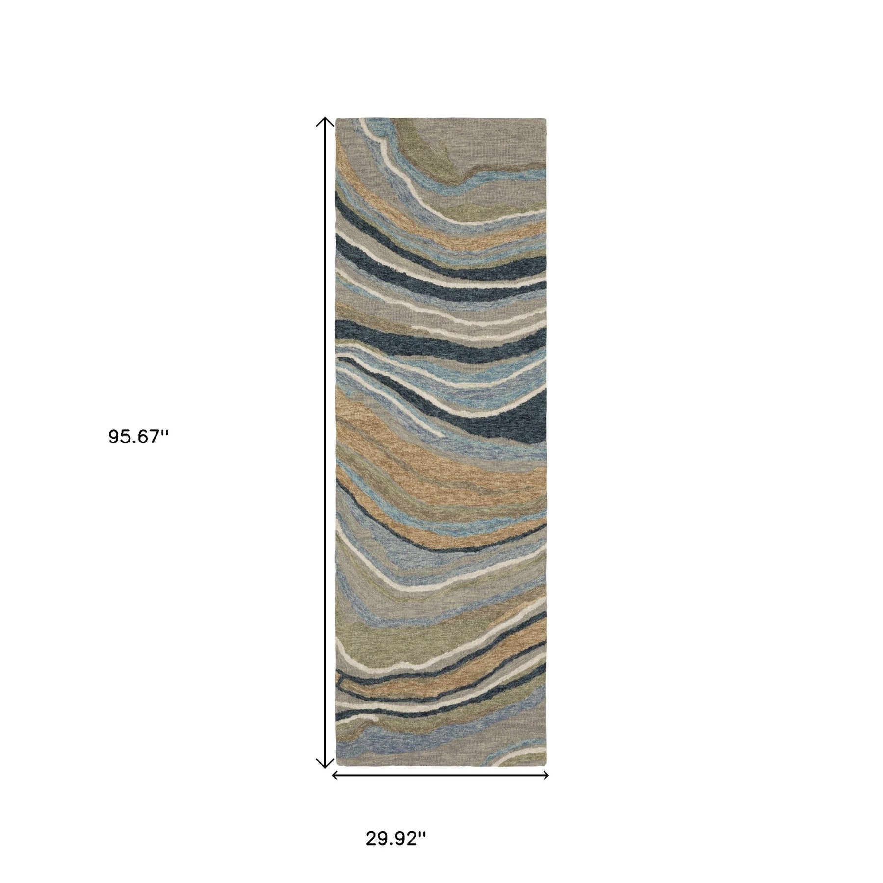 Set an inviting tone in your space with this 8-foot gray wool abstract hand tufted runner rug. This runner shaped rug features a abstract design in gray to give it visual interest. A classic shape marries with good looking design for your space the coloring of this rug adds a delightfully neutral tone to your home and will easily match with most any decor. Place this area rug against a hardwood or tile floor and it will enliven your living space with style and sophistication. 29.92-inch H x 95.67-inch W x 0.39-inch D