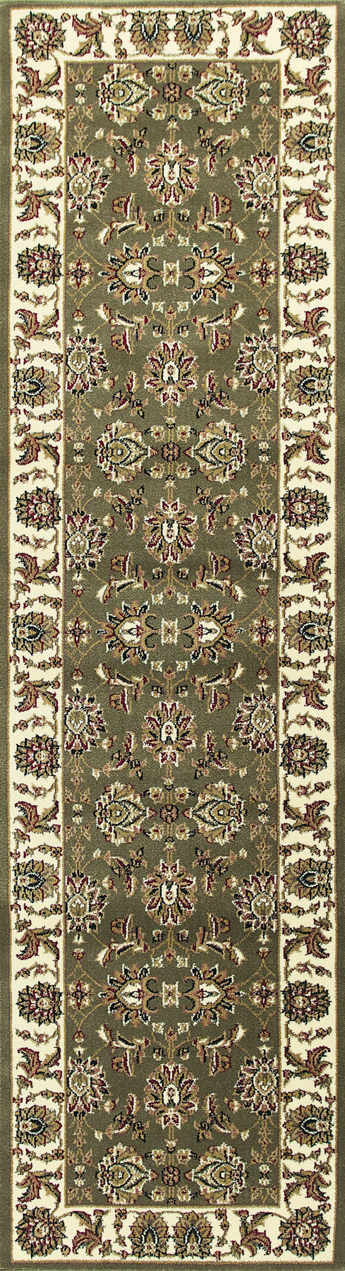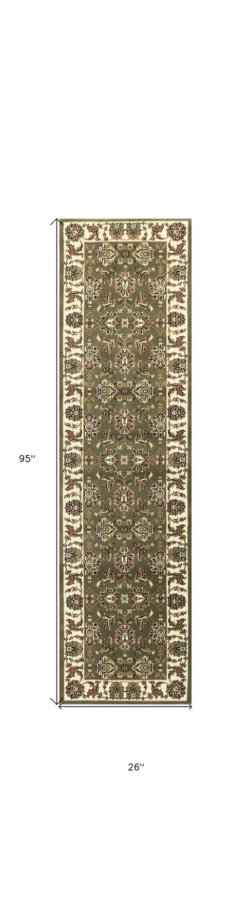 Set an inviting tone in your space with this 8-foot green and ivory floral runner rug. Ideal for spaces with kids and pets, this rug is stain resistant to help repel dirt and spilled liquids. Built to last, this rug crafted from polypropylene fibers is known for its durability and long lasting appeal. Rugs are a great way to showcase your style, hide imperfections, warm your home and reduce noise. This traditional style runner makes a great accent for the hallway, in front of cabinets, in the laundry room, or any other space you need a narrow and long rug. 26-inch h x 95-inch w x 0.5-inch d.
