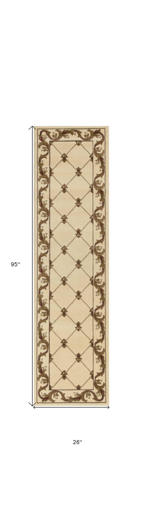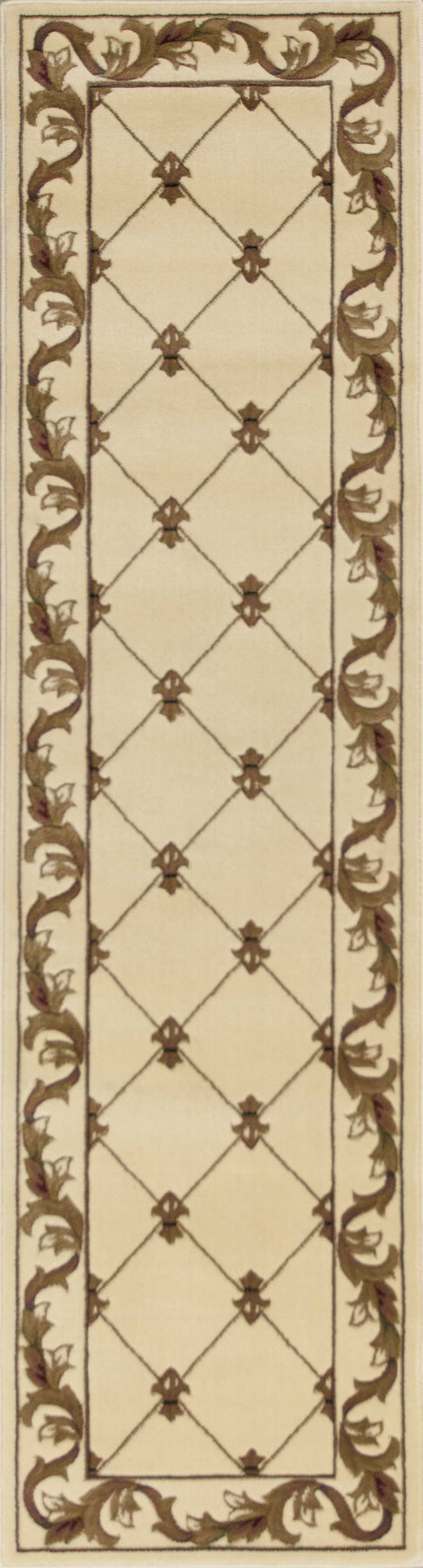 Adorn your home with this bewitching ivory fleur-de-lis rug which will turn your floor into art. Its a beguiling piece, which will certainly spruce up the ambiance of your home and get rid of monotony. This rug is a hard wearing piece machine-woven in China of 100% heat-set polypropylene and hand-carved with specific attention to detail. Its beautiful blend of yesterday and today will give an appealing modern feel to the look and feel of your home. As for measurements, they are 1/2 for height, 2' for width, and 7'' for depth. To care for it, vacuum it regularly and spot clean any stains. Its also recommended that you have it professionally cleaned occasionally. If you want a beautiful and useful rug that can fit in well with any interior, this is the one for you. Actual Dimensions: 2'2" x 7'11"