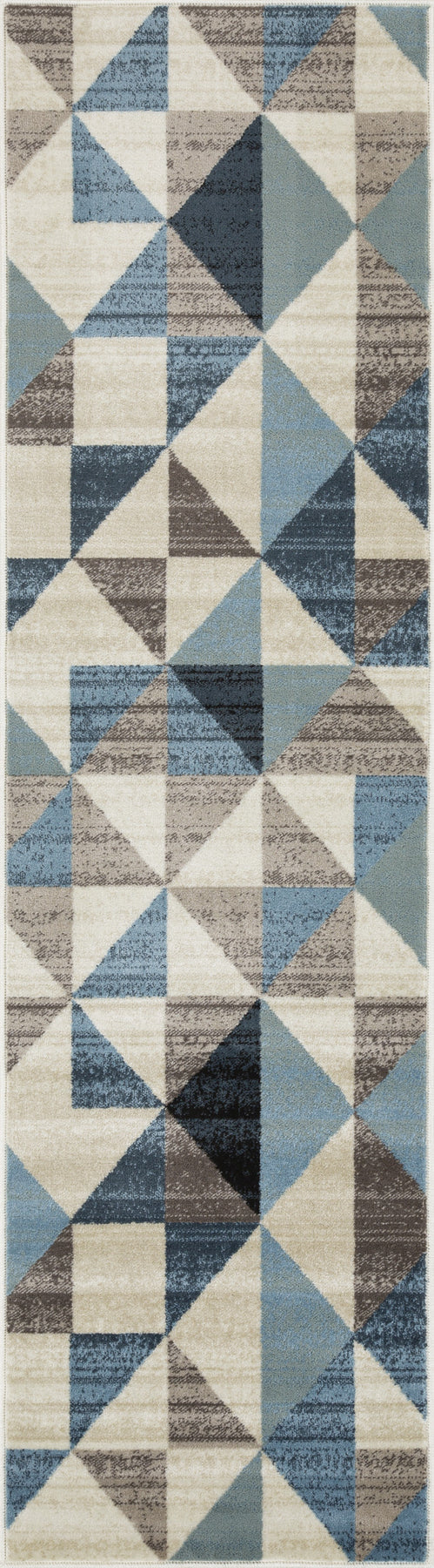 Add some artistry to your room with this 8-foot beige blue and gray geometric runner rug. Ideal for spaces with kids and pets, this rug is stain resistant to help repel dirt and spilled liquids. Built to last, this rug crafted from polypropylene fibers is known for its durability and long lasting appeal. Rugs are a great way to showcase your style, hide imperfections, warm your home and reduce noise. This rectangular shaped rug features a abstract design that will add a functional and decorative accent to your space. This contemporary style runner makes a great accent for the hallway, in front of cabinets, in the laundry room, or any other space you need a narrow and long rug. 26-inch h x 95-inch w x 0.5-inch d.