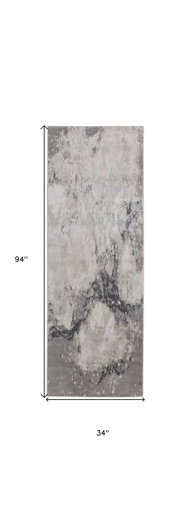 Add great coloration and comfortable texture to your space with this 8-foot gray and ivory abstract power loom non skid runner rug. This runner shaped rug features a abstract design in gray and ivory to give it visual interest. A classic shape marries with good looking design for your space. 34-inch H x 94-inch W x 0.4-inch D