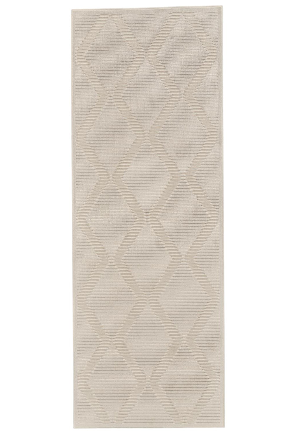 Add great coloration and comfortable texture to your space with this 8-foot ivory and tan geometric power loom runner rug. This runner shaped rug features a geometric design that will add a functional and decorative accent to your space. Ideal for spaces with kids and pets, this rug is stain resistant to help repel dirt and spilled liquids. This smaller sized rug is just what you need for your walkway, or in front of door, cabinet, refrigerator, or chair. 34-inch h x 94-inch w x 0.39-inch d