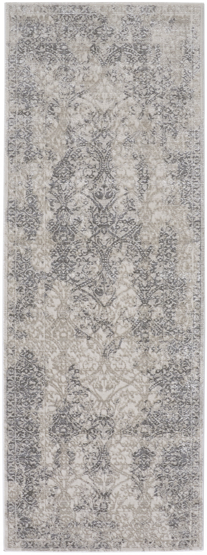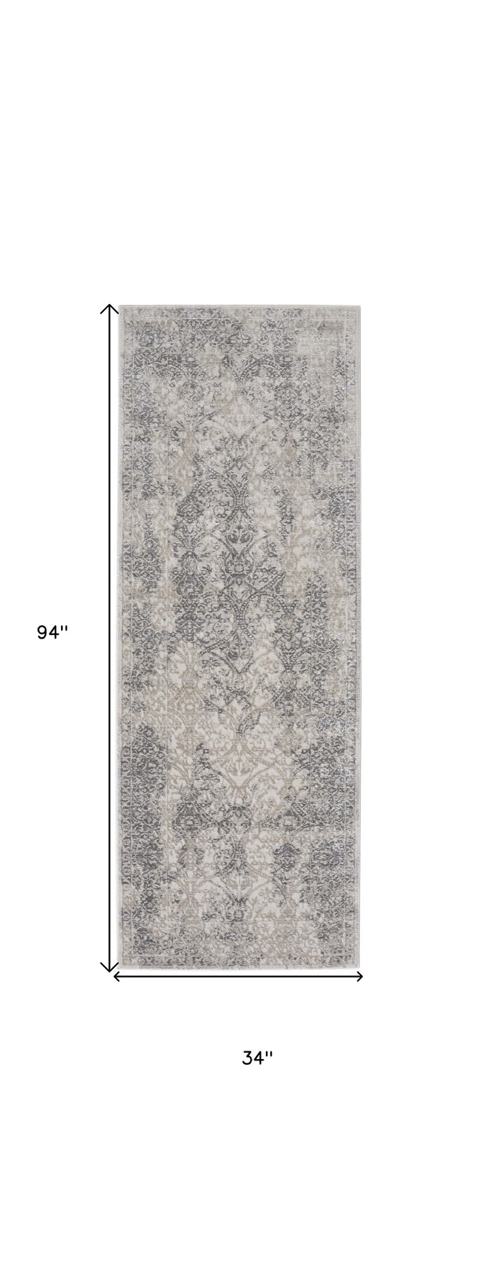 Add some artistry to your room with this 8' ivory gray and black abstract stain resistant runner rug. This runner shaped rug features a abstract design in ivory gray and black to give it visual interest. A classic shape marries with good looking design for your space This superior Turkish rug represents the highest quality and is built to last. Ideal for spaces with kids and pets, this rug is stain resistant to help repel stains and spilled liquids. Place this area rug against a hardwood or tile floor and it will enliven your living space with style and sophistication. 0.39" H x 34" W x 94" D