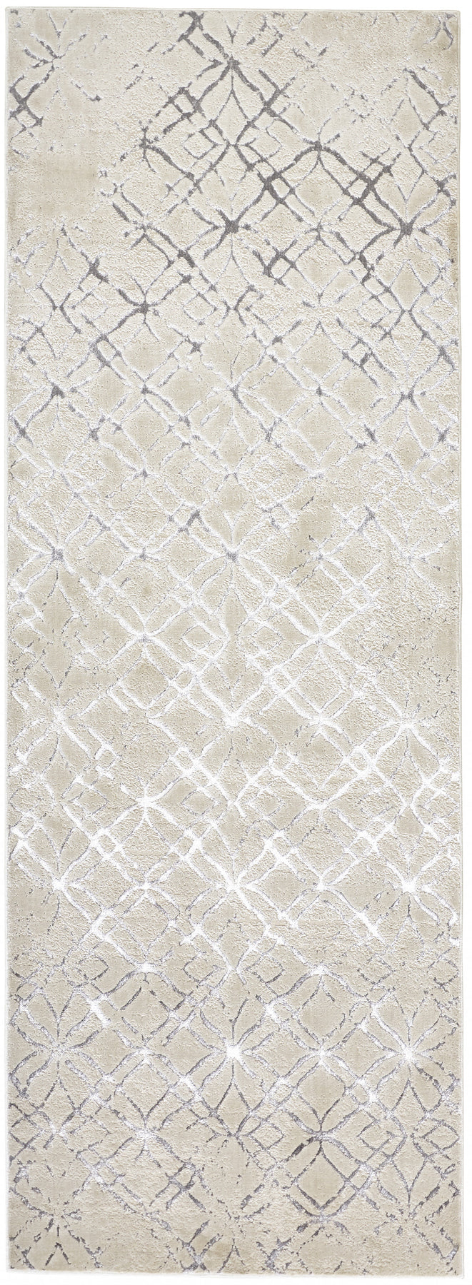Add some artistry to your room with this 8' silver gray and white abstract stain resistant runner rug. This runner shaped rug features a abstract design in silver gray and white to give it visual interest. A classic shape marries with good looking design for your space This superior Turkish rug represents the highest quality and is built to last. Ideal for spaces with kids and pets, this rug is stain resistant to help repel stains and spilled liquids. Place this area rug against a hardwood or tile floor and it will enliven your living space with style and sophistication. 0.39" H x 34" W x 94" D