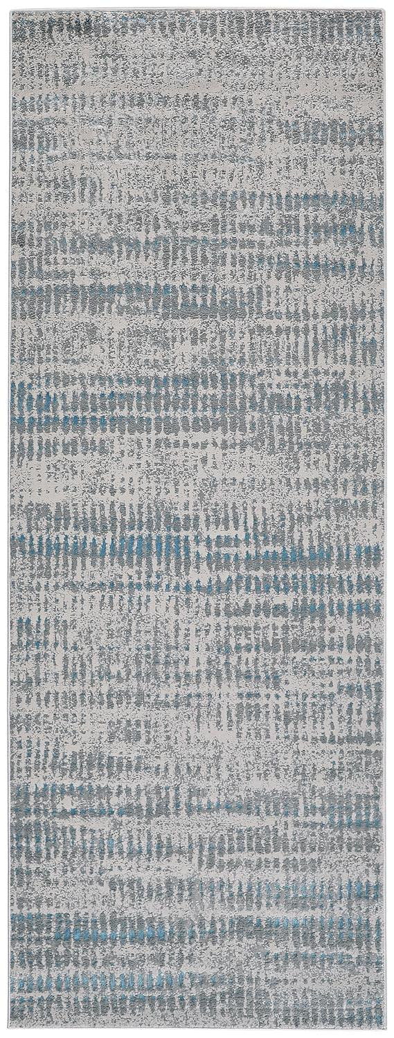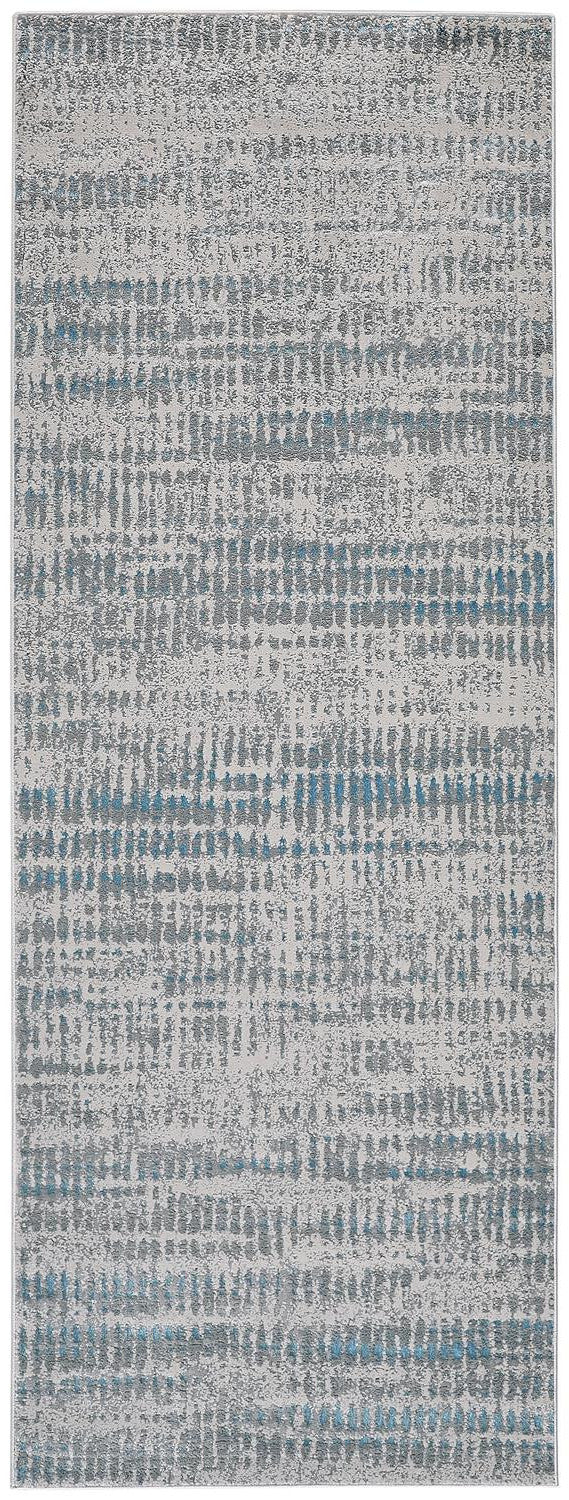 Add great coloration and comfortable texture to your space with this 8-foot gray and ivory abstract power loom runner rug. This runner shaped rug features a abstract design that will add a functional and decorative accent to your space. Ideal for spaces with kids and pets, this rug is stain resistant to help repel dirt and spilled liquids. This smaller sized rug is just what you need for your walkway, or in front of door, cabinet, refrigerator, or chair. 34-inch h x 94-inch w x 0.39-inch d