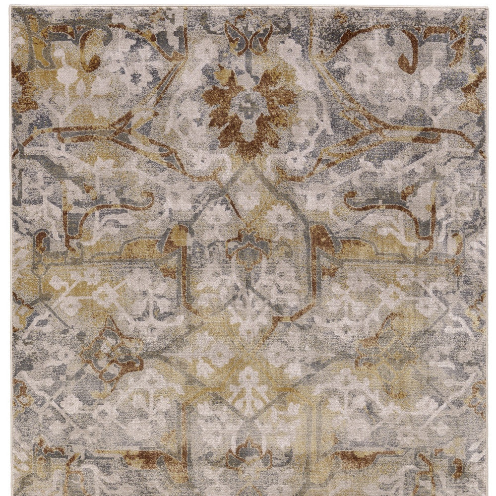 Set an inviting tone in your space with this 8-foot gray yellow and ivory floral power loom worn faded runner rug. This runner shaped rug features a floral design that will add a functional and decorative accent to your space. Ideal for spaces with kids and pets, this rug is stain resistant to help repel dirt and spilled liquids. This smaller sized rug is just what you need for your walkway, or in front of door, cabinet, refrigerator, or chair. 34-inch h x 94-inch w x 0.39-inch d