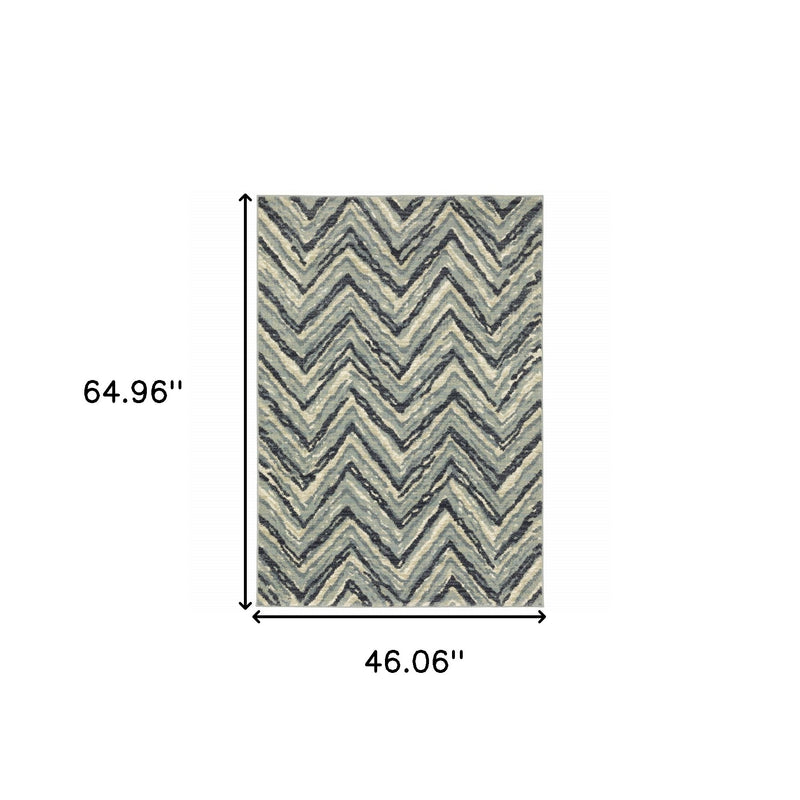 Set an inviting tone in your space with this 4' x 6' blue ivory grey beige and light blue geometric power loom stain resistant area rug. This rectangle shaped rug features a geometric design in blue ivory grey beige and light blue to give it visual interest. A classic shape marries with good looking design for your space Ideal for spaces with kids and pets, this rug is stain resistant to help repel stains and spilled liquids. Area Rugs help to give warmth and sense of home to your space. 0.79" H x 46.06" W x 64.96" D
