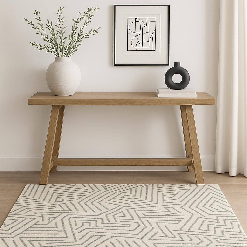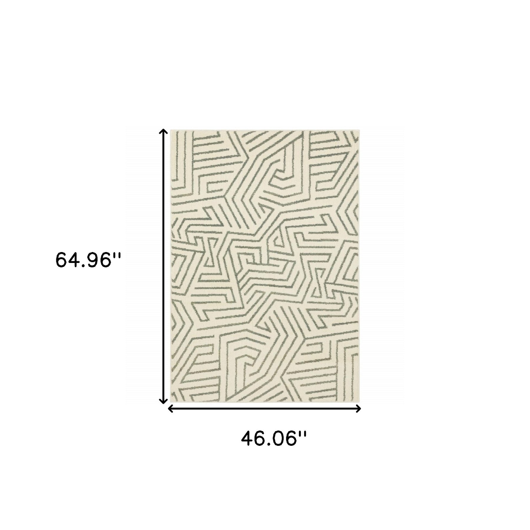 Add great coloration and comfortable texture to your space with this 4' x 6' beige grey and light blue geometric power loom stain resistant area rug. This rectangle shaped rug features a geometric design in beige grey and light blue to give it visual interest. A classic shape marries with good looking design for your space Ideal for spaces with kids and pets, this rug is stain resistant to help repel stains and spilled liquids. Area Rugs help to give warmth and sense of home to your space. 0.79" H x 46.06" W x 64.96" D