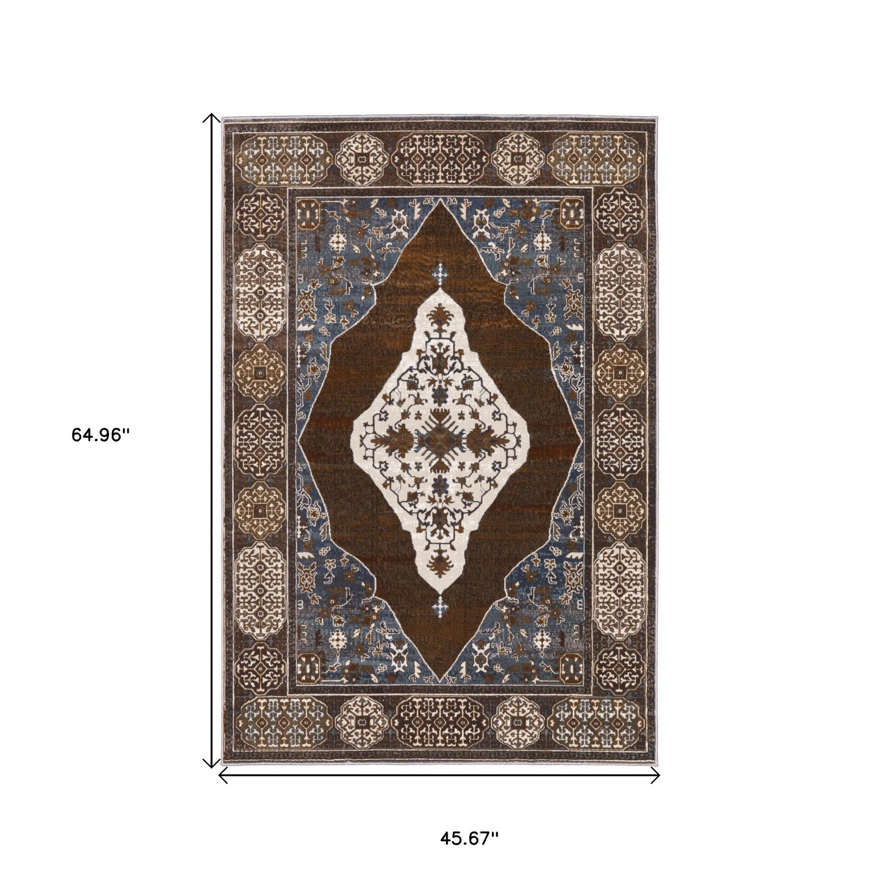 Add great coloration and comfortable texture to your space with this 4-foot x 6-foot gray medallion power loom area rug. This rectangle shaped rug features a medallion design in gray to give it visual interest. A classic shape marries with good looking design for your space the coloring of this rug adds a delightfully neutral tone to your home and will easily match with most any decor. Ideal for spaces with kids and pets, this rug is stain resistant to help repel stains and spilled liquids. Area rugs help to give warmth and sense of home to your space. 45.67-inch H x 64.96-inch W x 0.39-inch D