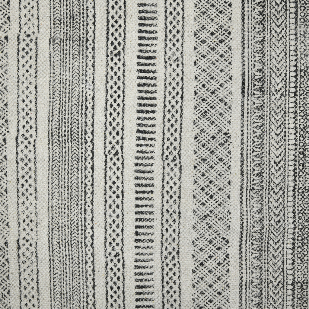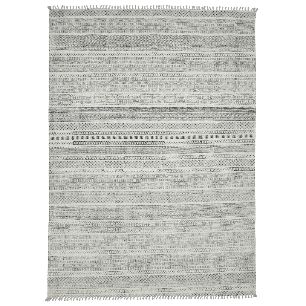Set an inviting tone in your space with this 3 feet x 5 feet charcoal geometric flatweave handmade distressed area rug. This rectangle shaped rug features a geometric design in charcoal to give it visual interest. A classic shape marries with good looking design for your space Tassel ends bring a timeless and fashionable look to your interior. Place this area rug against a hardwood or tile floor and it will enliven your living space with style and sophistication. 0.2 inches H x 36 inches W x 60 inches D