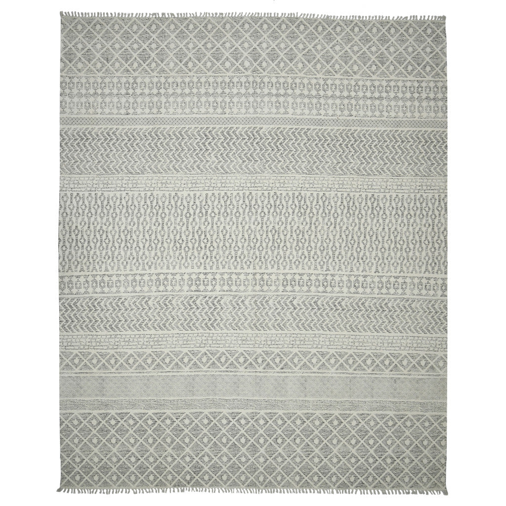 This 3 feet x 5 feet gray geometric flatweave handmade distressed area rug with fringe, is a great way to add warmth to a room. This rectangle shaped rug features a geometric design in gray to give it visual interest. A classic shape marries with good looking design for your space Tassel ends bring a timeless and fashionable look to your interior. Place this area rug against a hardwood or tile floor and it will enliven your living space with style and sophistication. 0.2 inches H x 36 inches W x 60 inches D