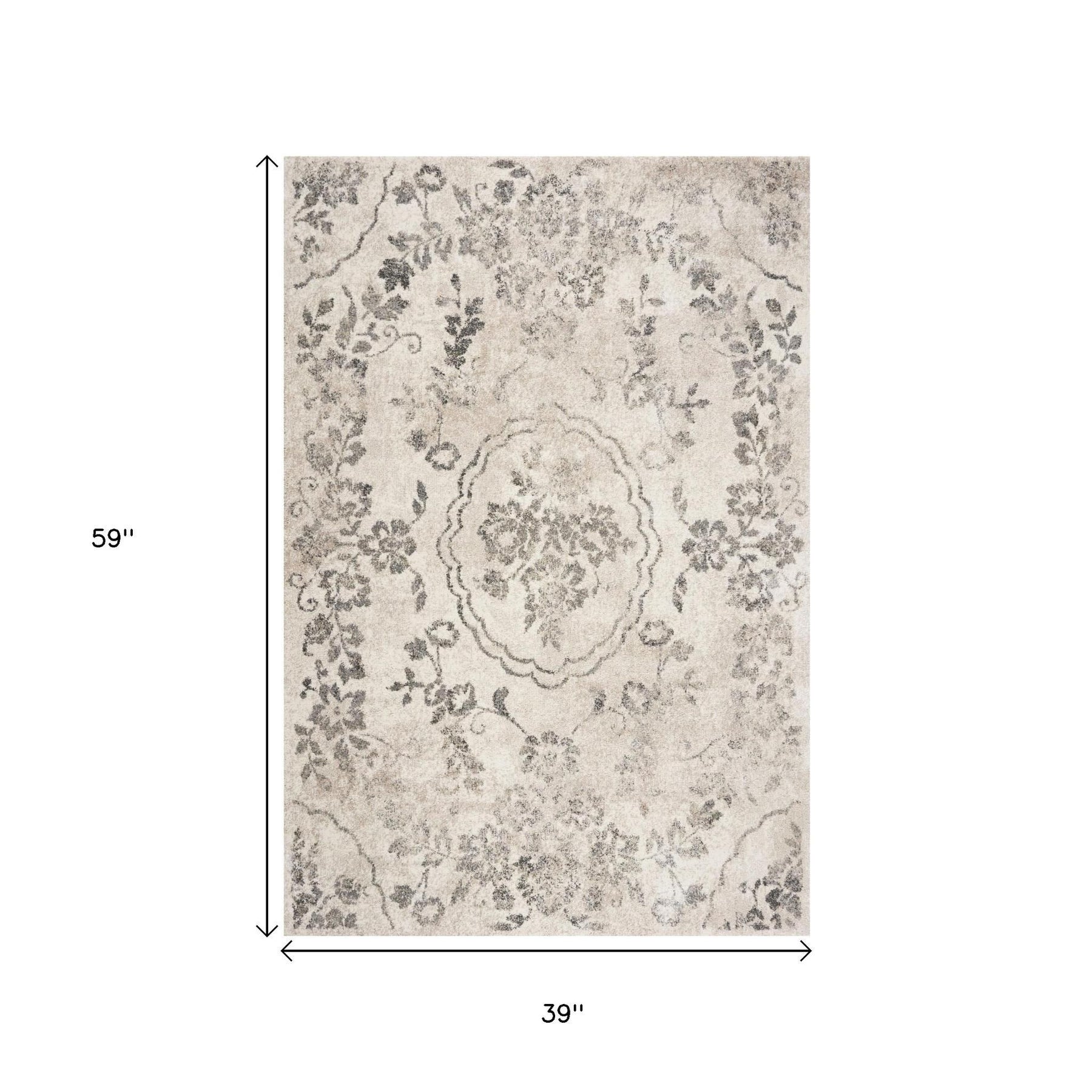 This 3-foot x 5-foot gray floral vines distressed area rug, is a great way to add warmth to a room. This rectangle shaped rug features a floral vines design in gray to give it visual interest. A classic shape marries with good looking design for your space the coloring of this rug adds a delightfully neutral tone to your home and will easily match with most any decor. Area rugs help to give warmth and sense of home to your space. 39-inch H x 59-inch W x 0.5-inch D