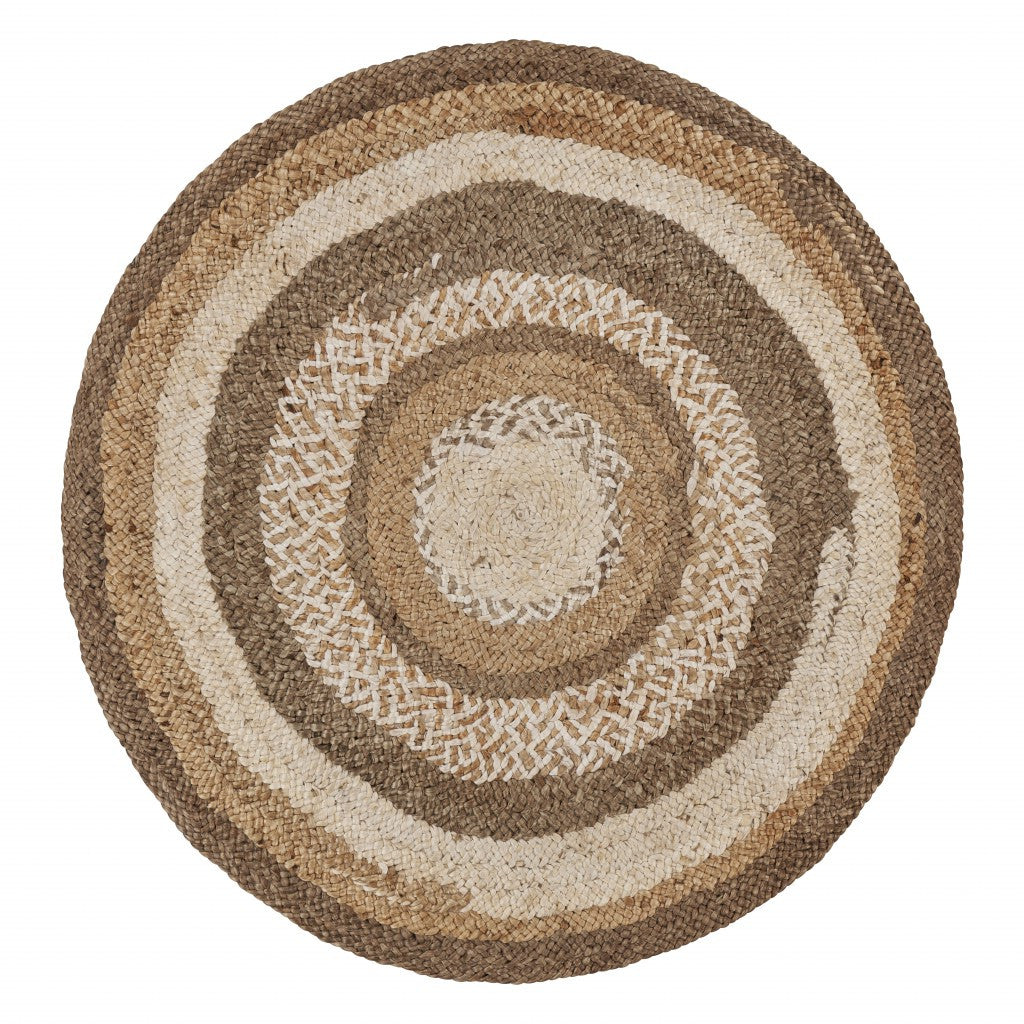 Add some artistry to your room with this 5-foot beige jute hand braided round rug. Crafted from jute fibers that give this piece premium texture, refinement, and appeal. Rugs are a great way to showcase your style, hide imperfections, warm your home and reduce noise. This smaller sized, classic styled rug is just what you need for your walkway, bedside, in front of door, cabinet, refrigerator, or chair. 48-inch h x 48-inch w x 0.5-inch d.