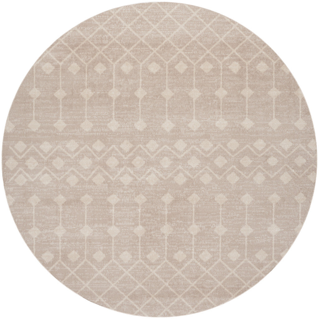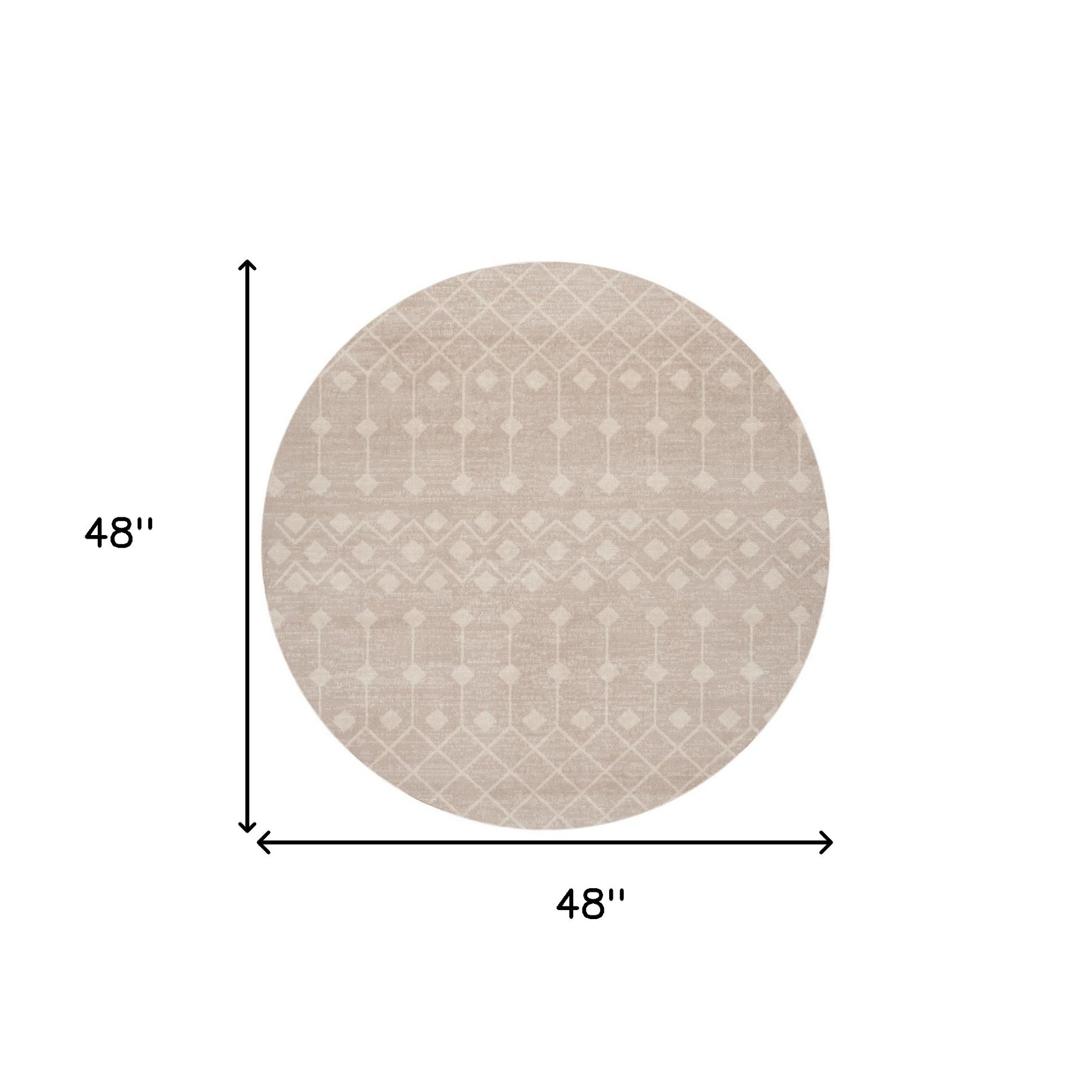 Add great coloration and comfortable texture to your space with this 4-foot beige geometric power loom round rug. This geometric round shaped rug features a geometric pattern in beige that combines a good looking print with a unique and updated shape. The mix of shape, color, and design gives this rug refreshing visual interest. 48-inch H x 48-inch W x 0.5-inch D