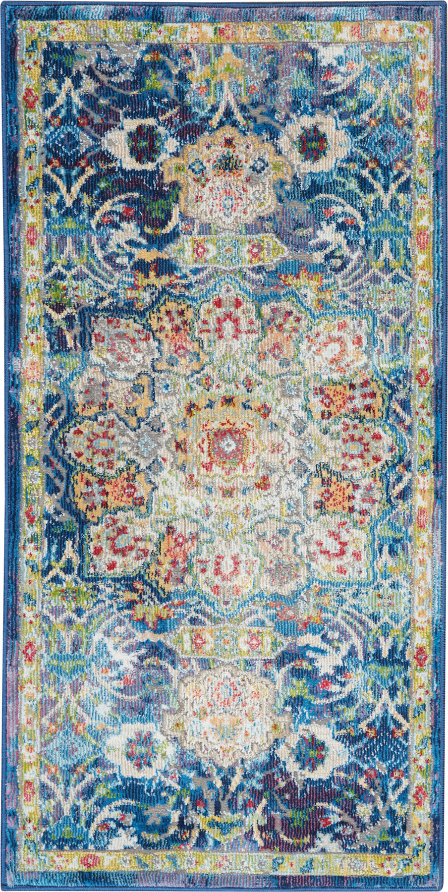 Set an inviting tone in your space with this 2-foot x 4-foot ivory and yellow floral medallion distressed non skid area rug. Built to last, this rug crafted from polypropylene and polyester blend fibers is known for its durability and long lasting appeal. Rugs are a great way to showcase your style, hide imperfections, warm your home and reduce noise. This smaller sized, traditional styled rug is just what you need for your walkway, bedside, in front of door, cabinet, refrigerator, or chair. 24-inch h x 48-inch w x 0.5-inch d