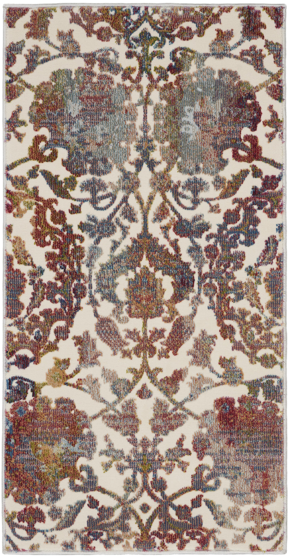 Add great coloration and comfortable texture to your space with this 2-foot x 4-foot white and golden brown floral distressed non skid area rug. Built to last, this rug crafted from polypropylene and polyester blend fibers is known for its durability and long lasting appeal. Rugs are a great way to showcase your style, hide imperfections, warm your home and reduce noise. This smaller sized, transitional styled rug is just what you need for your walkway, bedside, in front of door, cabinet, refrigerator, or chair. 24-inch h x 48-inch w x 0.5-inch d