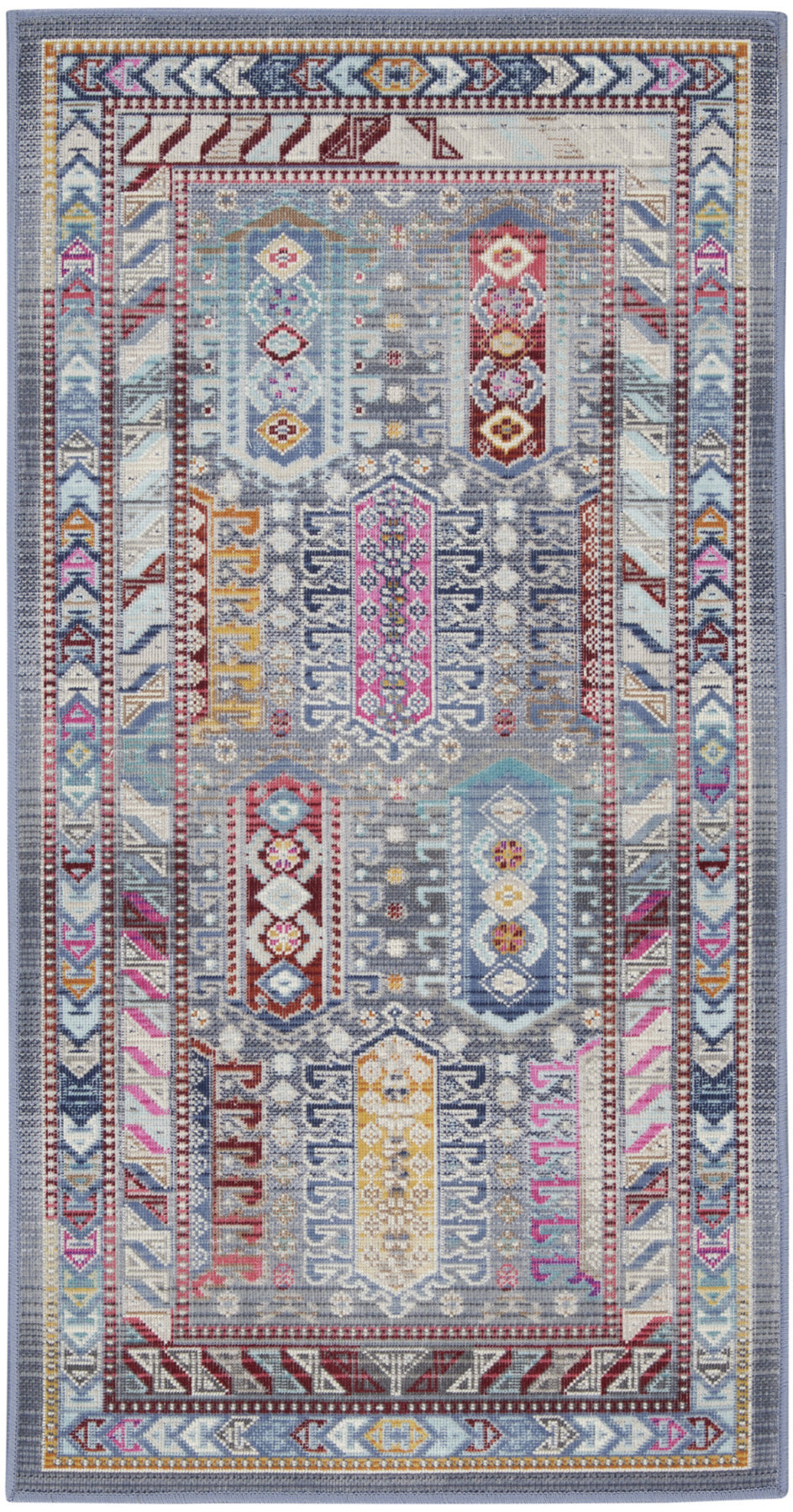 Set an inviting tone in your space with this 2-foot x 4-foot ivory gray and red floral distressed area rug. Ideal for spaces with kids and pets, this rug is stain resistant to help repel dirt and spilled liquids. Built to last, this rug crafted from polypropylene fibers is known for its durability and long lasting appeal. Rugs are a great way to showcase your style, hide imperfections, warm your home and reduce noise. This smaller sized, bohemian styled rug is just what you need for your walkway, bedside, in front of door, cabinet, refrigerator, or chair. 24-inch h x 48-inch w x 0.5-inch d.