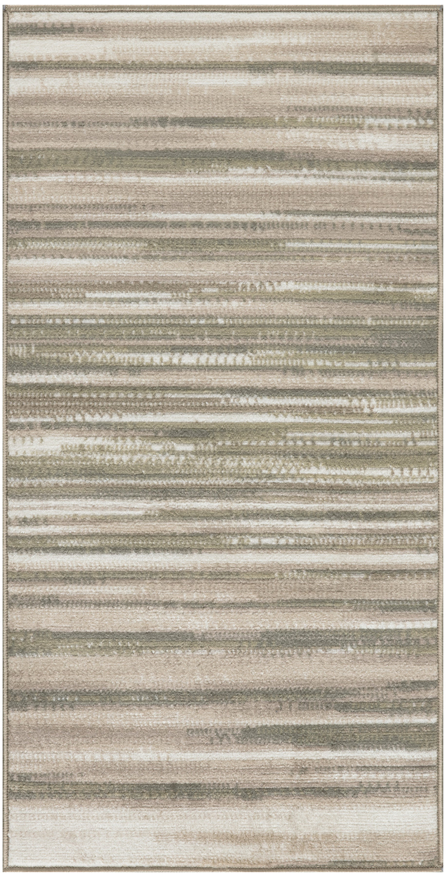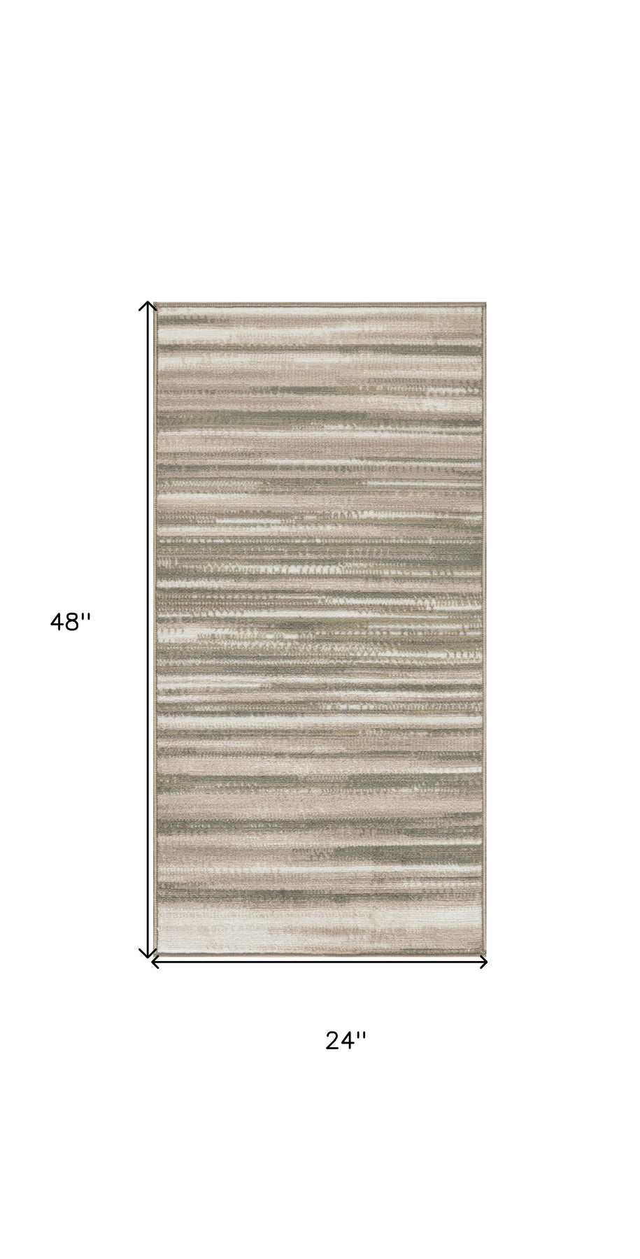 This 2-foot x 4-foot ivory green and gray striped area rug, is a great way to add warmth to a room. Ideal for spaces with kids and pets, this rug is stain resistant to help repel dirt and spilled liquids. Built to last, this rug crafted from polypropylene fibers is known for its durability and long lasting appeal. Rugs are a great way to showcase your style, hide imperfections, warm your home and reduce noise. This smaller sized, modern styled rug is just what you need for your walkway, bedside, in front of door, cabinet, refrigerator, or chair. 24-inch h x 48-inch w x 0.5-inch d