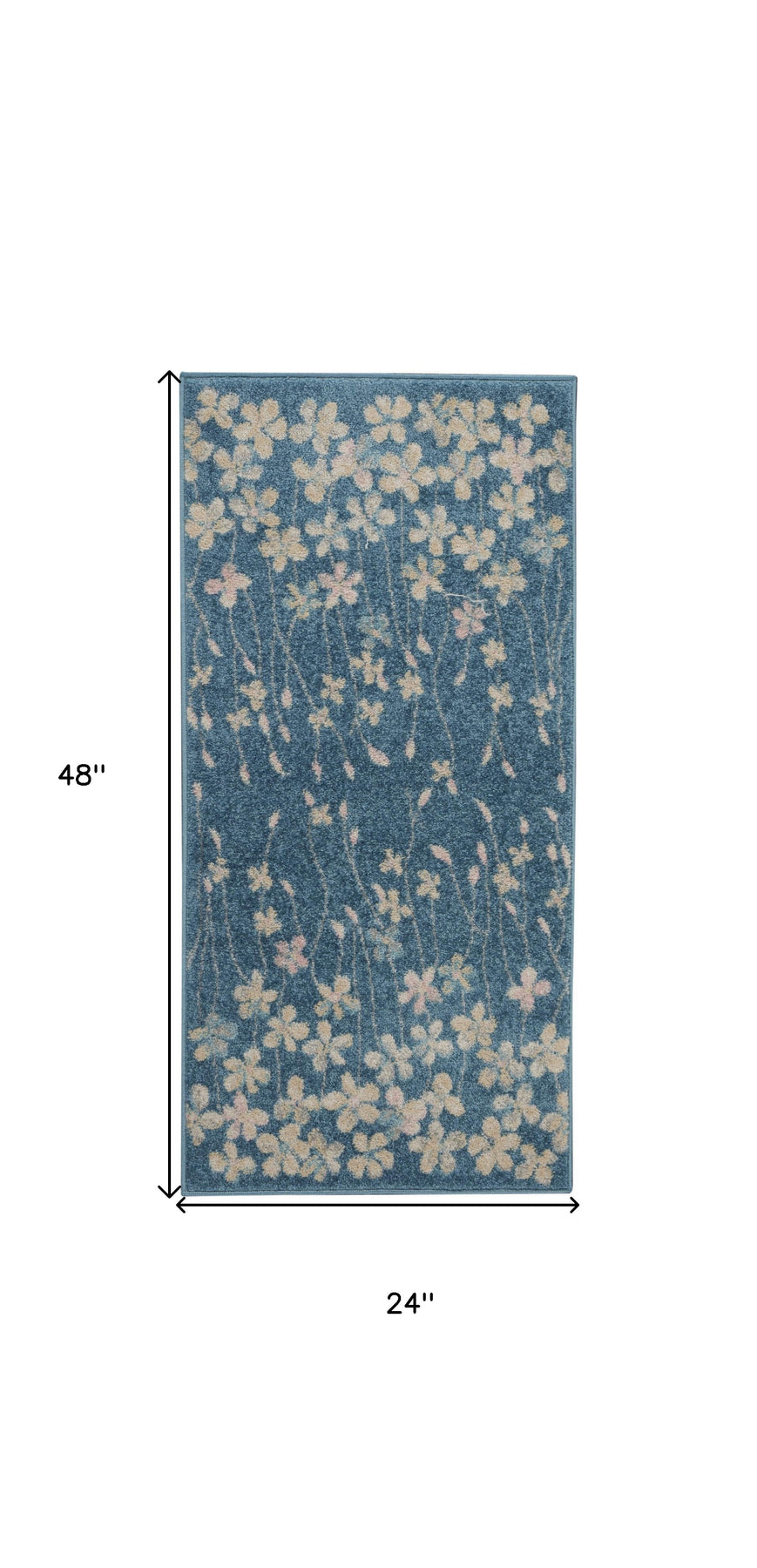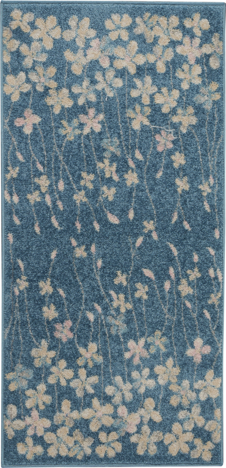 Add great coloration and comfortable texture to your space with this 2-foot x 4-foot turquoise and cream botanical leaves area rug. Ideal for spaces with kids and pets, this rug is stain resistant to help repel dirt and spilled liquids. Built to last, this rug crafted from polypropylene fibers is known for its durability and long lasting appeal. Rugs are a great way to showcase your style, hide imperfections, warm your home and reduce noise. This smaller sized, contemporary styled rug is just what you need for your walkway, bedside, in front of door, cabinet, refrigerator, or chair. 24-inch h x 48-inch w x 0.5-inch d.