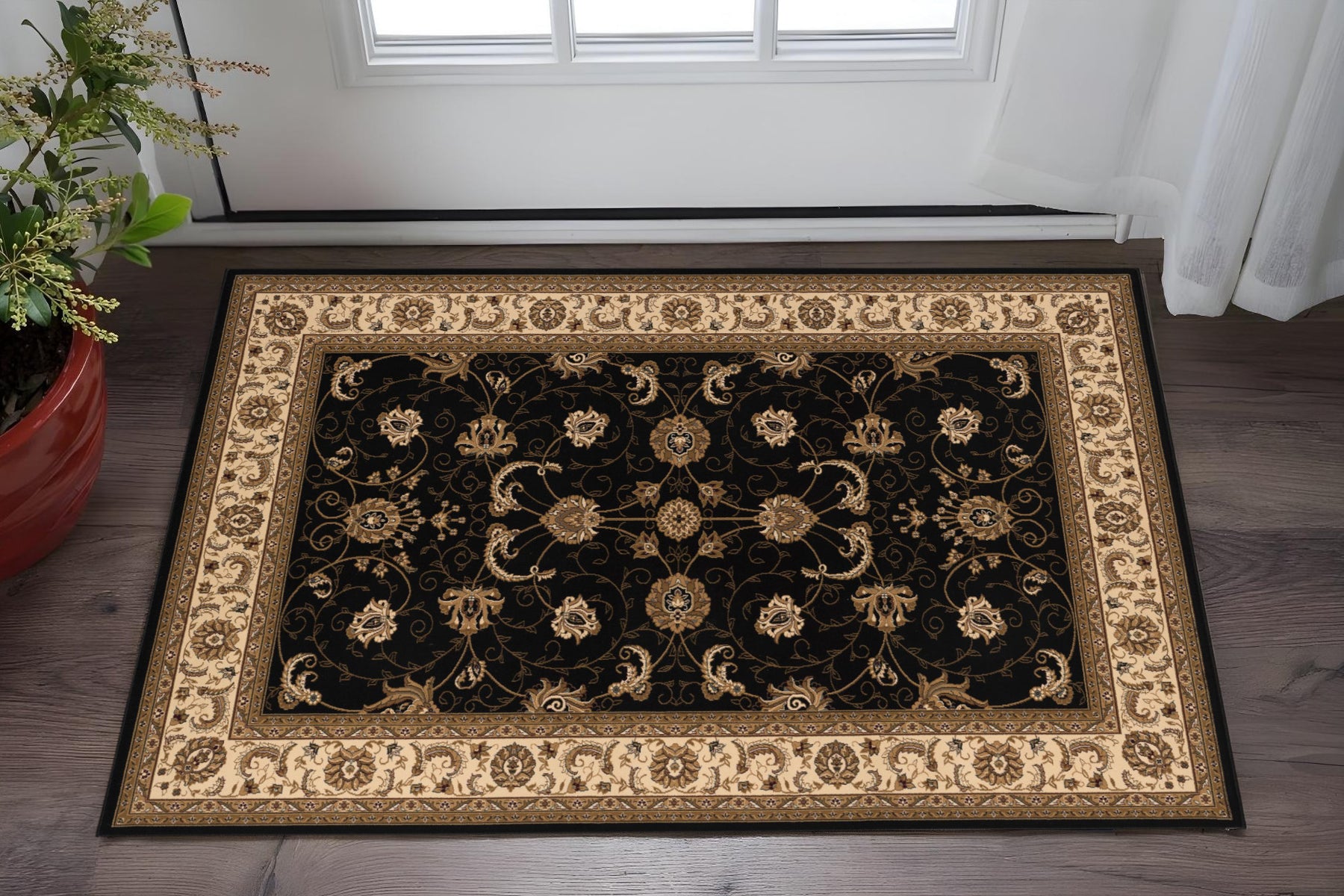 Add great coloration and comfortable texture to your space with this 3-foot x 4-foot black beige and brown oriental area rug. Ideal for spaces with kids and pets, this rug is stain resistant to help repel dirt and spilled liquids. Built to last, this rug crafted from polypropylene fibers is known for its durability and long lasting appeal. Rugs are a great way to showcase your style, hide imperfections, warm your home and reduce noise. This smaller sized, traditional styled rug is just what you need for your walkway, bedside, in front of door, cabinet, refrigerator, or chair. 32-inch h x 48-inch w x 0.35-inch d.
