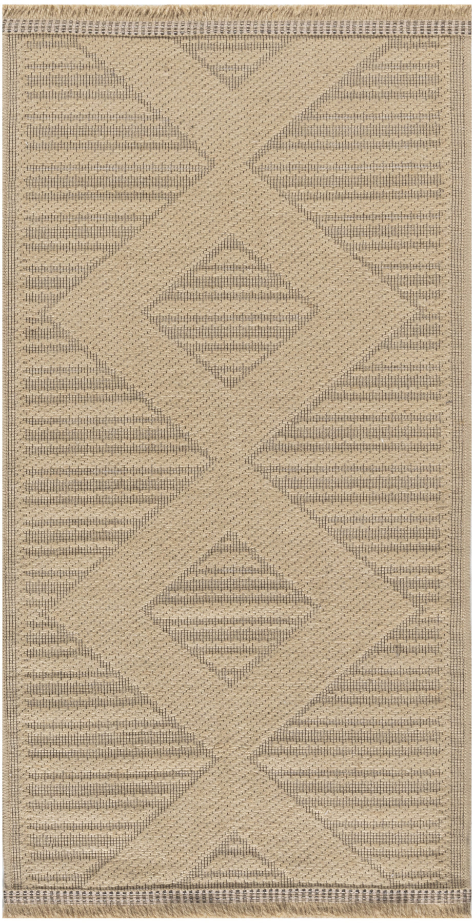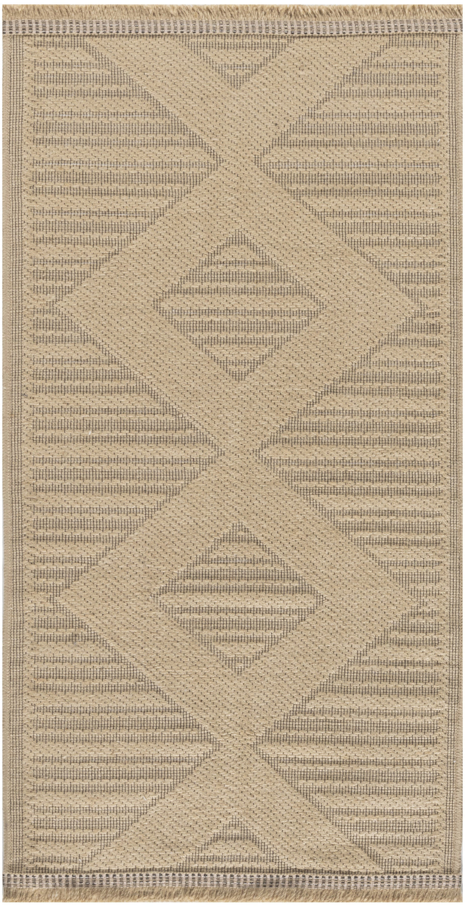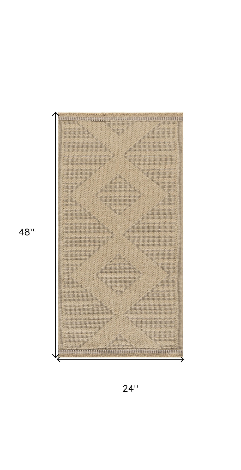 This 2-foot x 4-foot natural and beige geometric flatweave non skid area rug with fringe, is a great way to add warmth to a room. Crafted from jute, cotton, and polyester fibers that give this piece premium texture, refinement, and appeal. Built to last, this rug crafted from jute, cotton, and polyester fibers is known for its durability and long lasting appeal. Rugs are a great way to showcase your style, hide imperfections, warm your home and reduce noise. Tassel ends bring a timeless and fashionable look to your interior. This smaller sized, modern styled rug is just what you need for your walkway, bedside, in front of door, cabinet, refrigerator, or chair. 24-inch h x 48-inch w x 0.25-inch d.