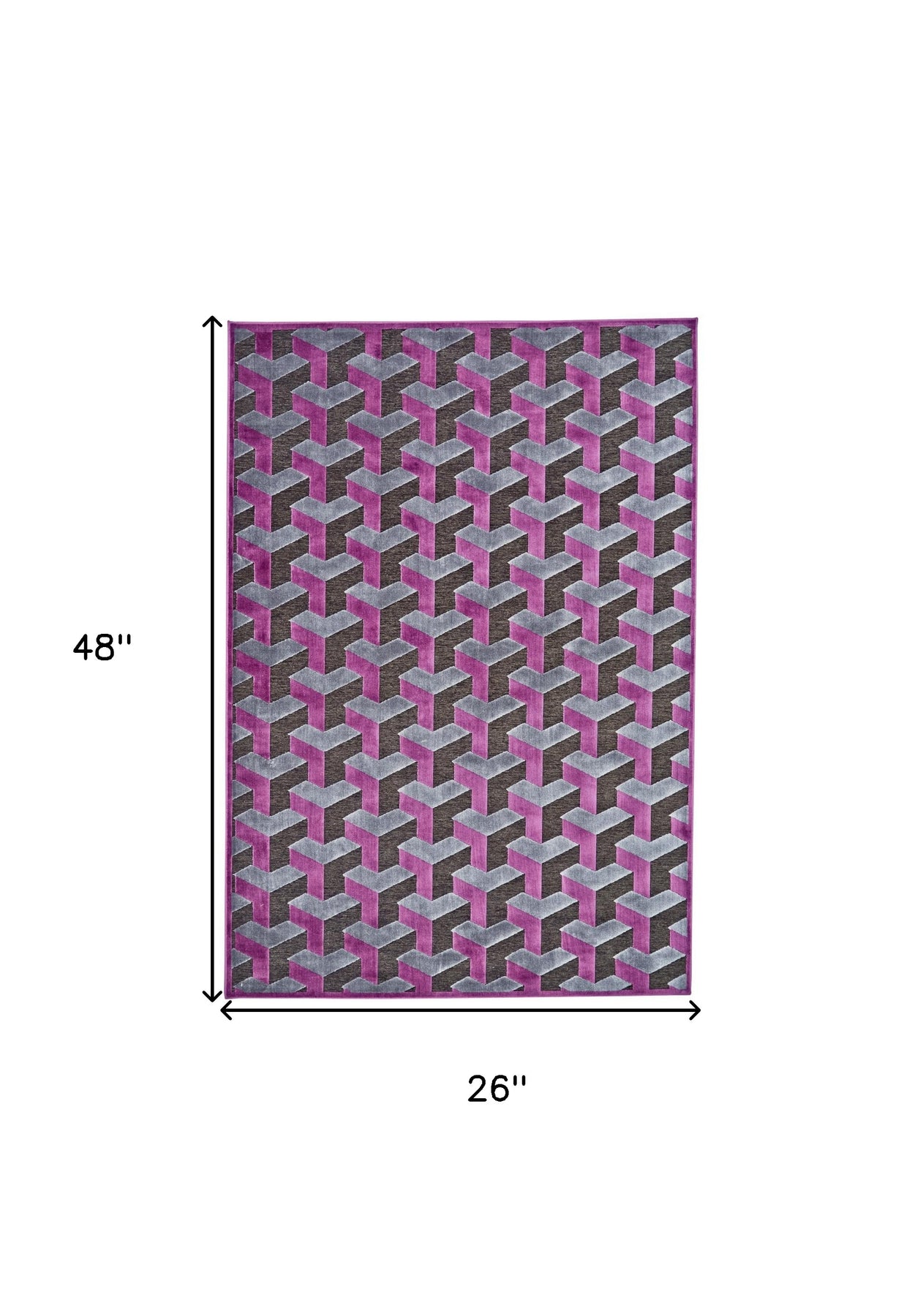 Add great coloration and comfortable texture to your space with this 2-foot x 4-foot purple brown and gray geometric power loom area rug. This rectangle shaped rug features a geometric design that will add a functional and decorative accent to your space. This smaller sized rug is just what you need for your walkway, or in front of door, cabinet, refrigerator, or chair. 26-inch h x 48-inch w x 0.24-inch d