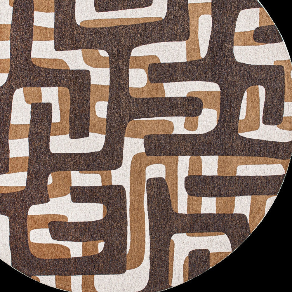 Set an inviting tone in your space with this 5-foot yellow and brown round abstract non skid area rug. This geometric round shaped rug features a abstract pattern in yellow and brown that combines a good looking print with a unique and updated shape. The mix of shape, color, and design gives this rug refreshing visual interest. This smaller sized rug is just what you need for your walkway, or in front of door, cabinet, refrigerator, or chair. 48-inch h x 48-inch w x 0.12-inch d