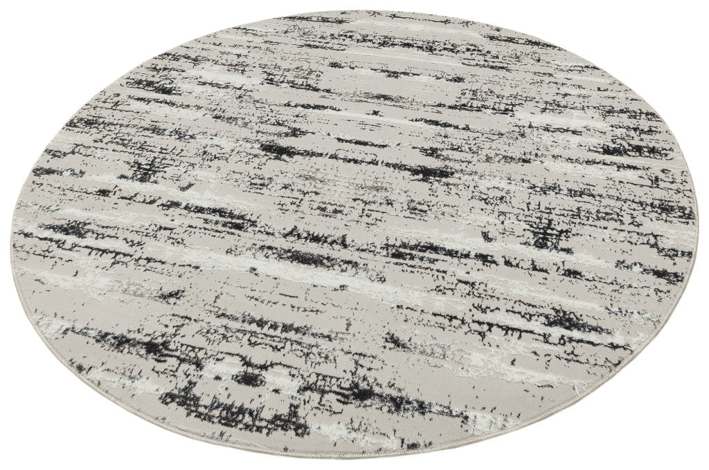 This 4-foot silver gray and off white abstract washable round rug, is a great way to add warmth to a room. Built to last, this rug crafted from polyester fibers is known for its durability and long lasting appeal. Rugs are a great way to showcase your style, hide imperfections, warm your home and reduce noise. This smaller sized, transitional styled rug is just what you need for your walkway, bedside, in front of door, cabinet, refrigerator, or chair. 47.3-inch h x 47.3-inch w x 0.2-inch d.