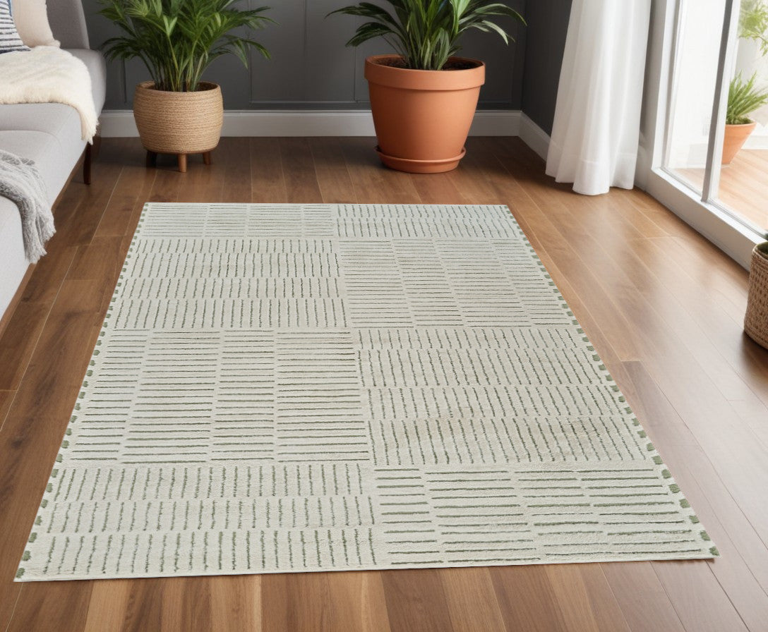 Set an inviting tone in your space with this 4-foot x 6-foot cream and green abstract distressed area rug. This rectangle shaped rug features a abstract design in cream and green to give it visual interest. A classic shape marries with good looking design for your space ideal for spaces with kids and pets, this rug is stain resistant to help repel stains and spilled liquids. 47.24-inch H x 47.24-inch W x 0.75-inch D