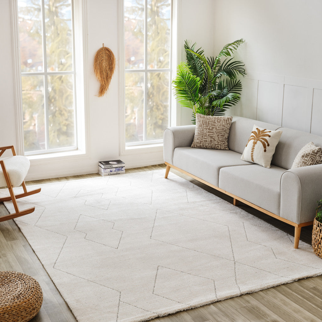 Add some artistry to your room with this 4-foot x 6-foot cream and beige abstract distressed area rug. This rectangle shaped rug features a abstract design in cream and beige to give it visual interest. A classic shape marries with good looking design for your space ideal for spaces with kids and pets, this rug is stain resistant to help repel stains and spilled liquids. 47.24-inch H x 47.24-inch W x 0.55-inch D