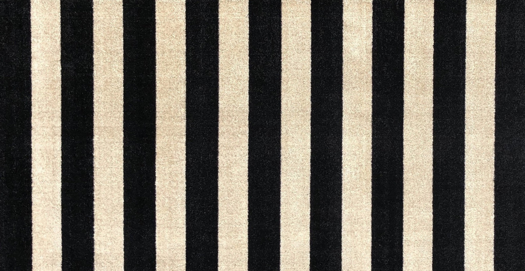 This low profile Blue Diamond Washable Floor Mat is a game changer. A fade resistant slightly distressed modern black and tan wide stripe design that is a fashion forward look for a mat that is super sturdy and can easily be thrown into the washer and dryer to clean. The premier formula rubber backing used makes this nylon rug slip resistantr with no need for an additional pad, and the backing will hold up during the wash and dry! The low profile means it easily fits under doors. Combine fashion and style with real life functionality with this great area rug/door mat. 27.5" x 47" x .3"